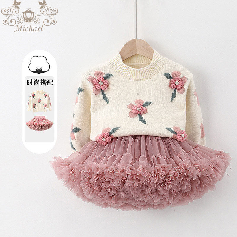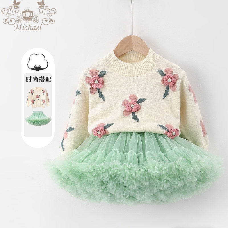 📚 女童tutu裙套装韩国童装秋冬新款女童公主甜美凸凸兔兔裙配毛衣衫