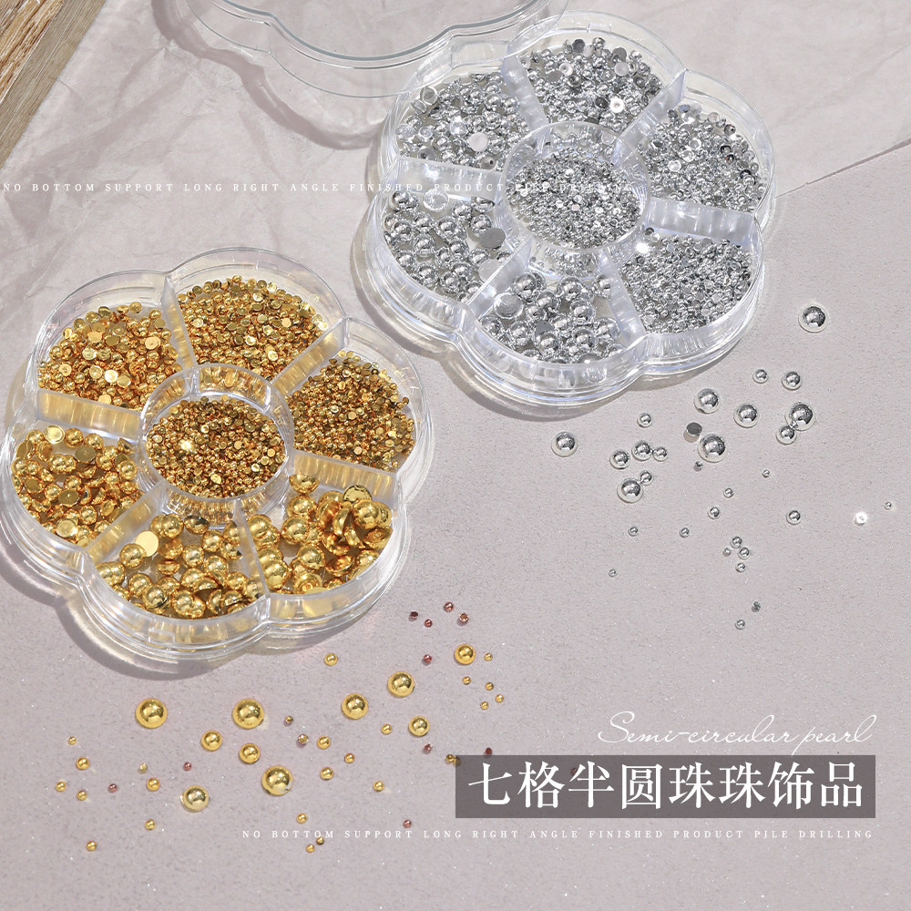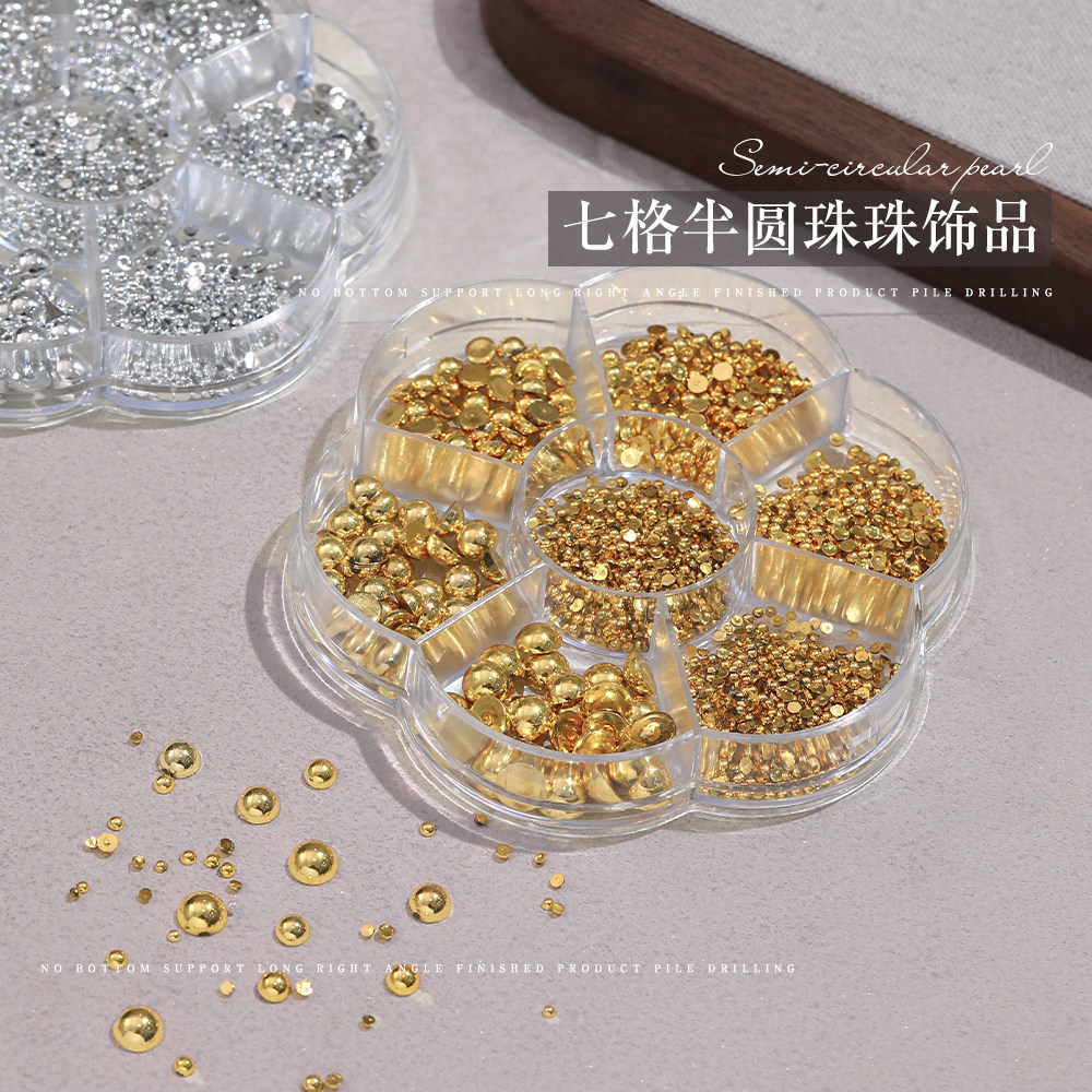 📚 网红七格半圆珠珠美甲饰品金色银色混装大小半圆球DIY指甲装饰品