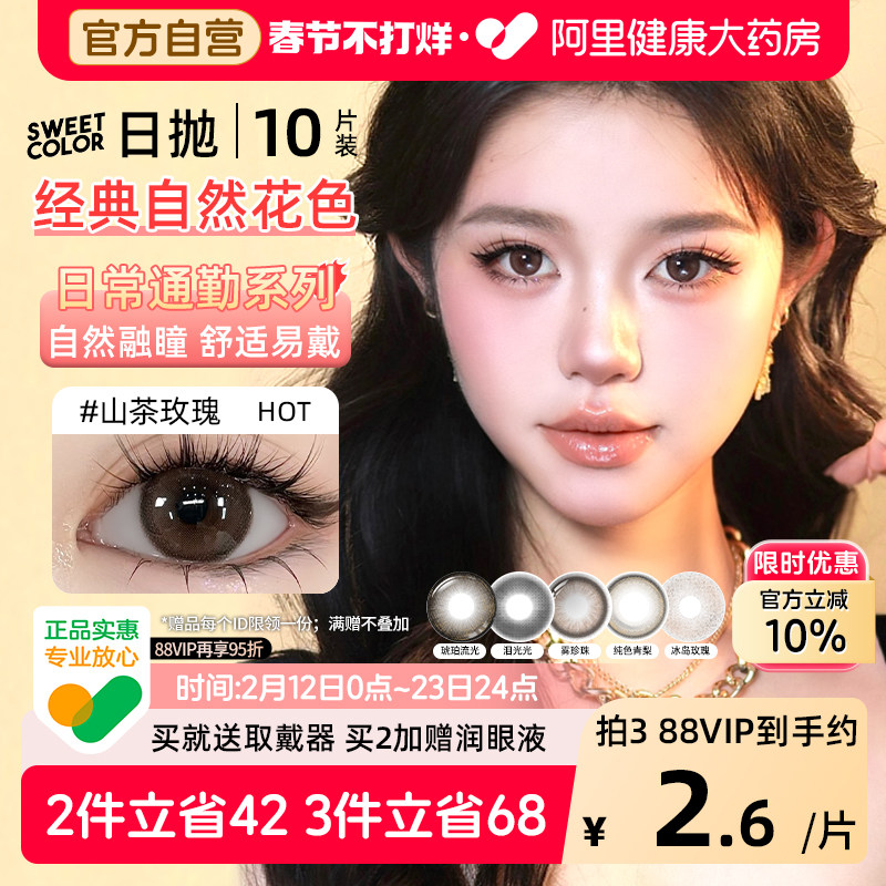 📚 SweetColor美瞳日抛10片山茶玫瑰自然通勤日常三明治工艺隐形眼镜