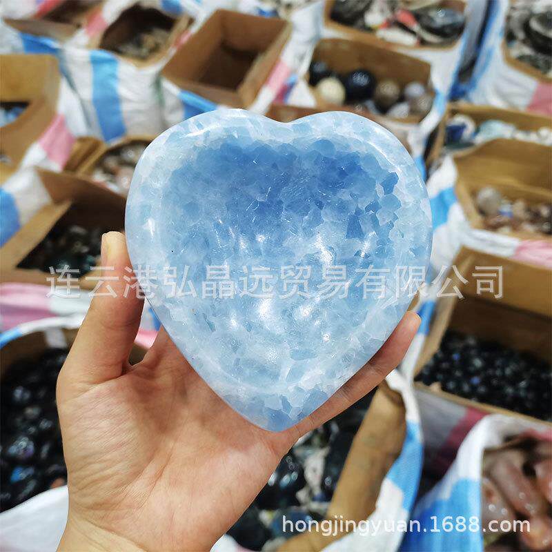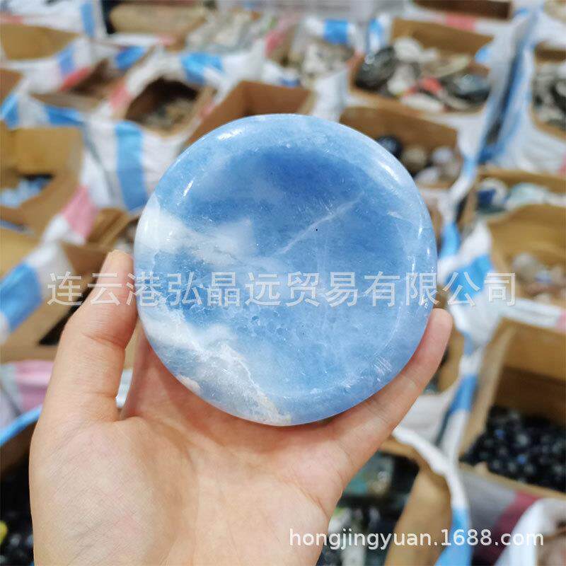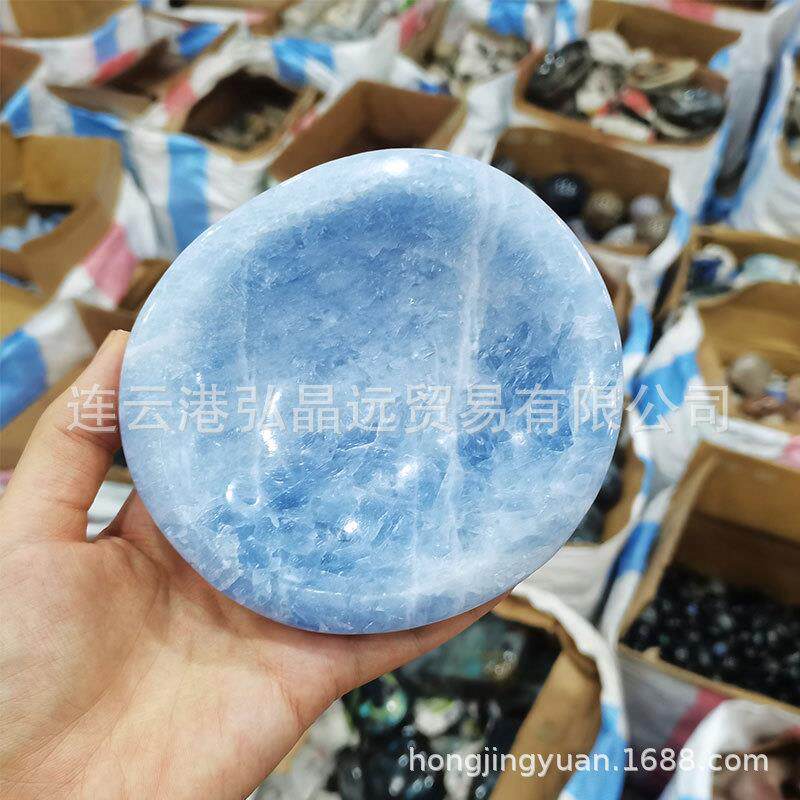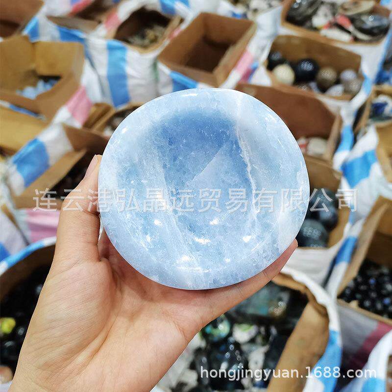 📚 弘晶远水晶蓝晶聚宝盆天青石烟灰缸爱心圆形摆件原石打磨