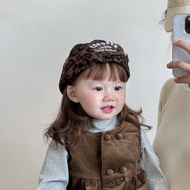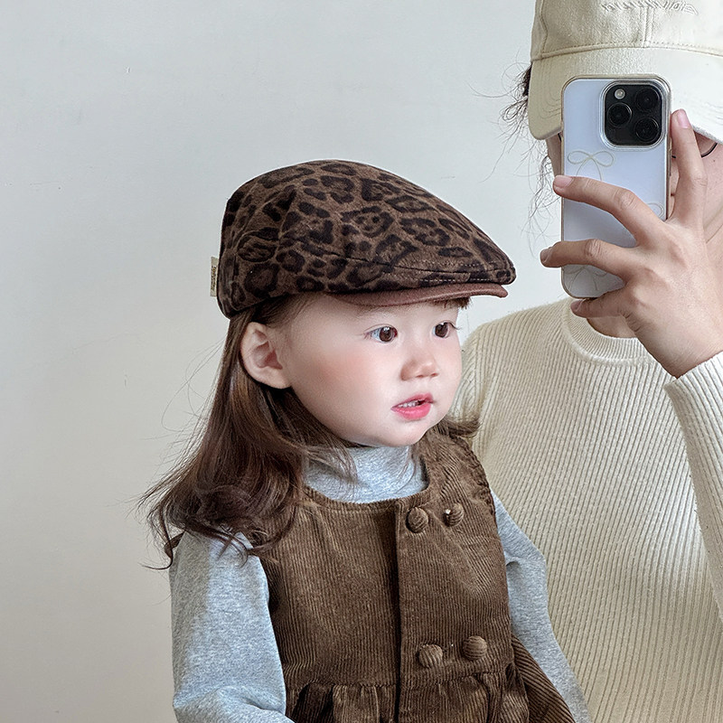 📚 儿童帽子春秋款洋气豹纹前进帽男女宝宝反戴贝雷帽小孩复古画家帽