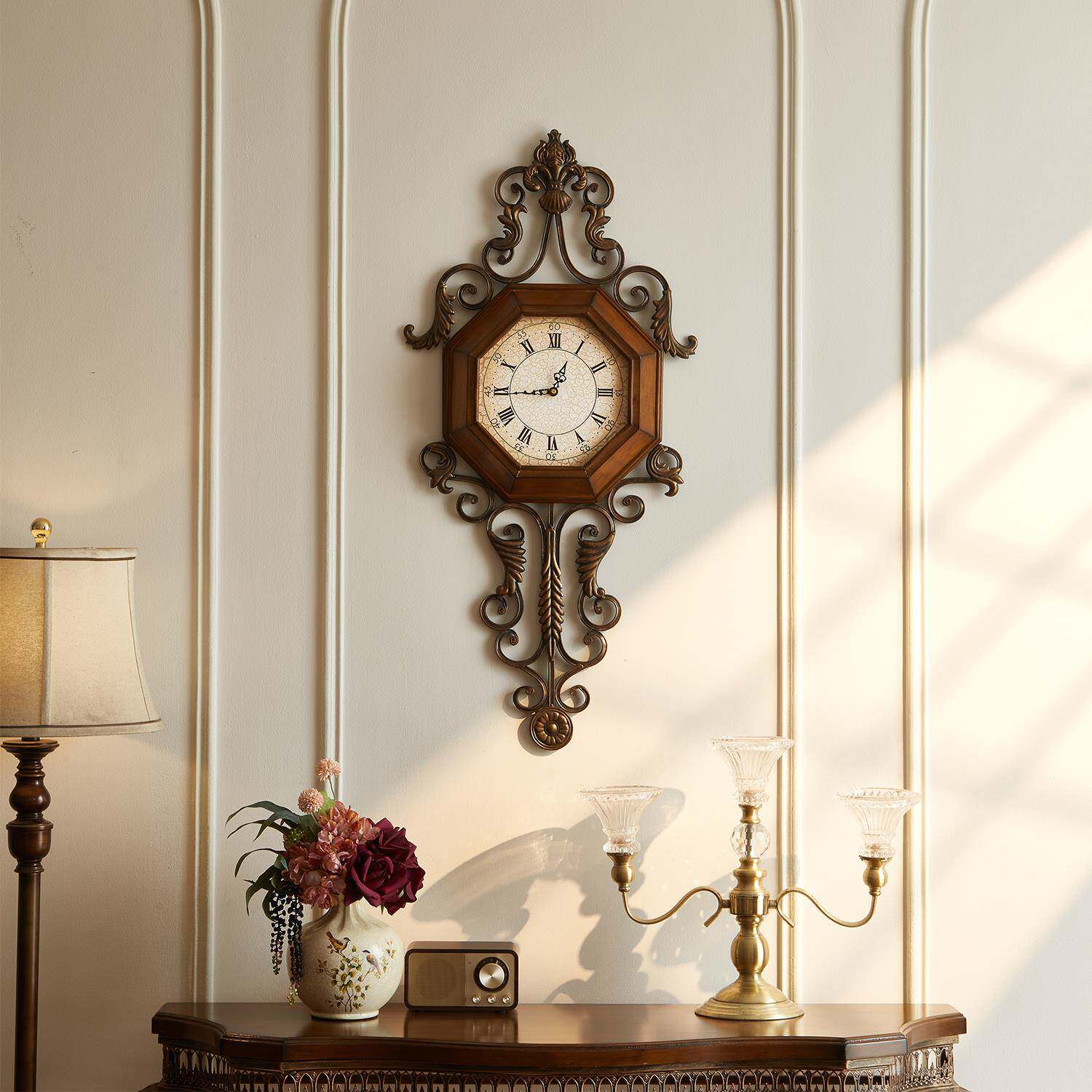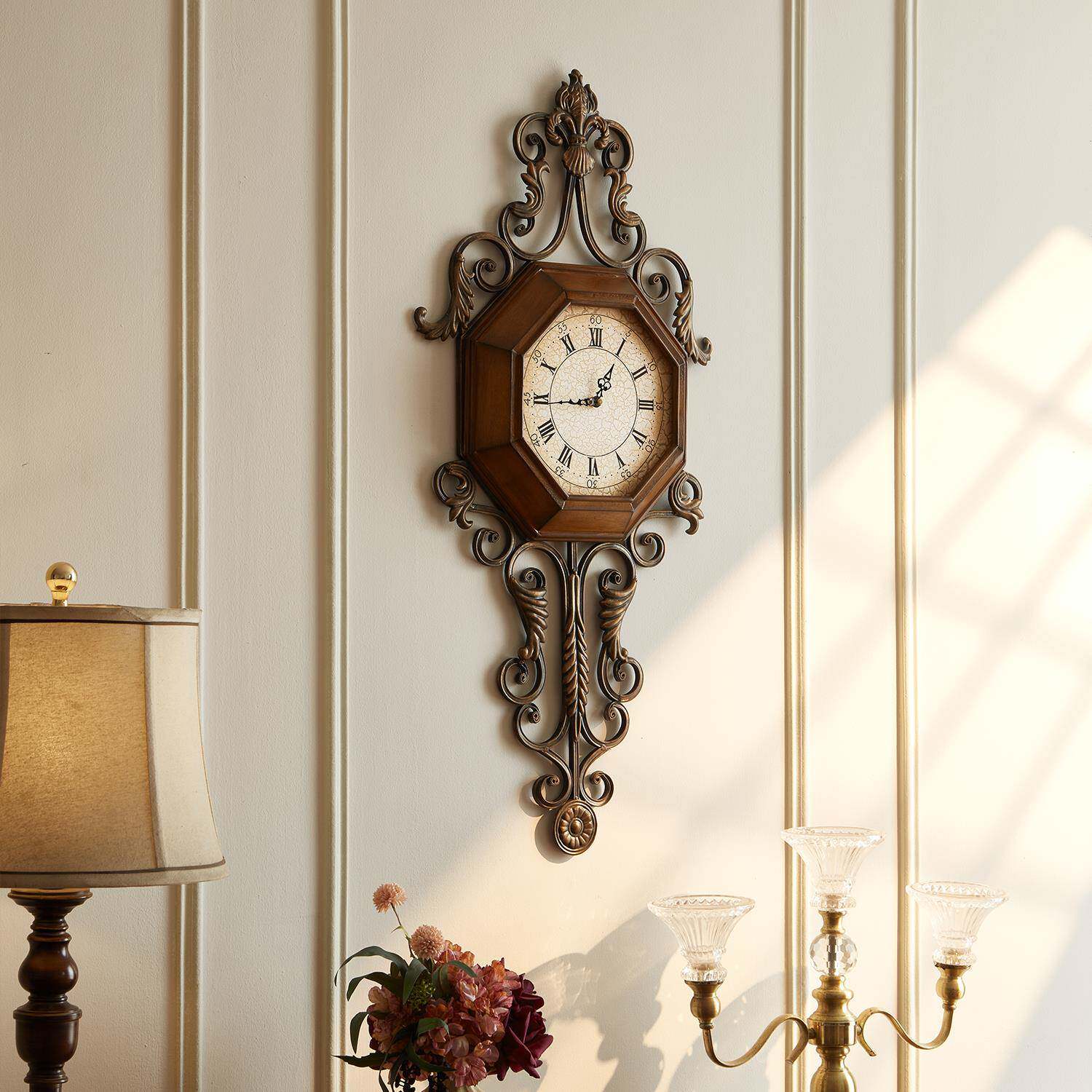 📚 实F97MT7JS木复古美式挂钟时创意厅钟表铁艺静音客欧个性时式尚家