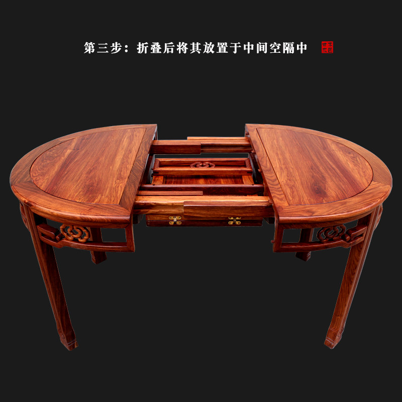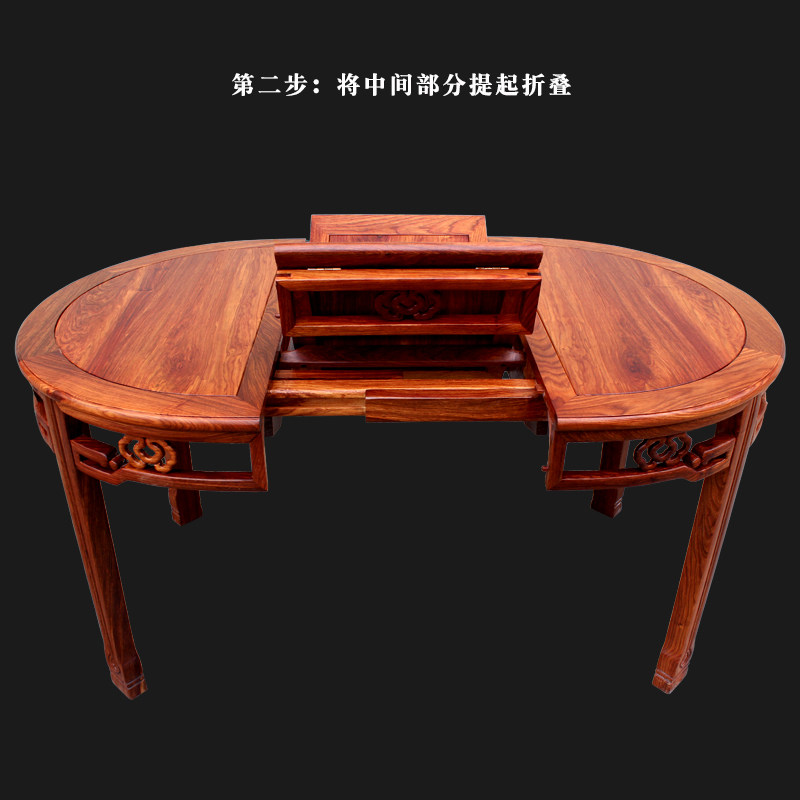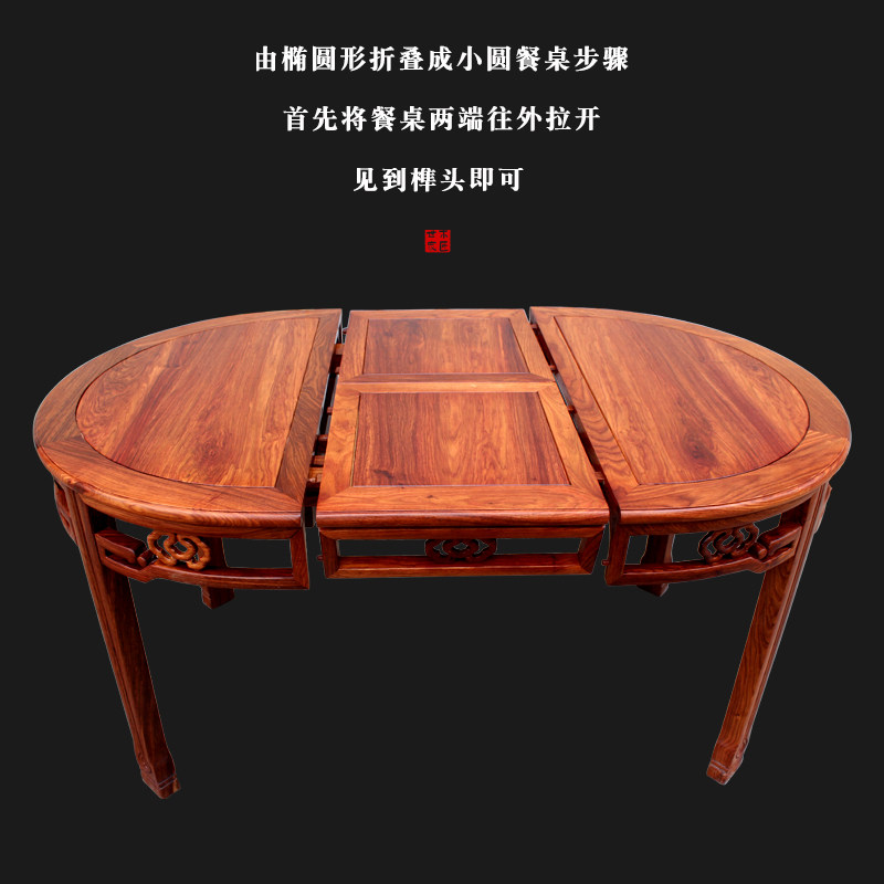 📚 刺猬紫檀折叠餐台红木伸缩餐桌椅组合现代中式花梨木小户型圆饭桌