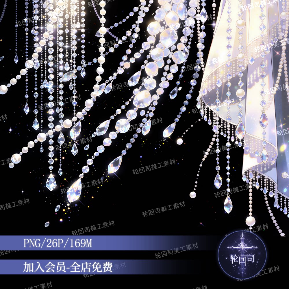 📚 原创可商用梦幻珍珠项链水晶吊坠PNG免扣图装饰元素水印设计素材