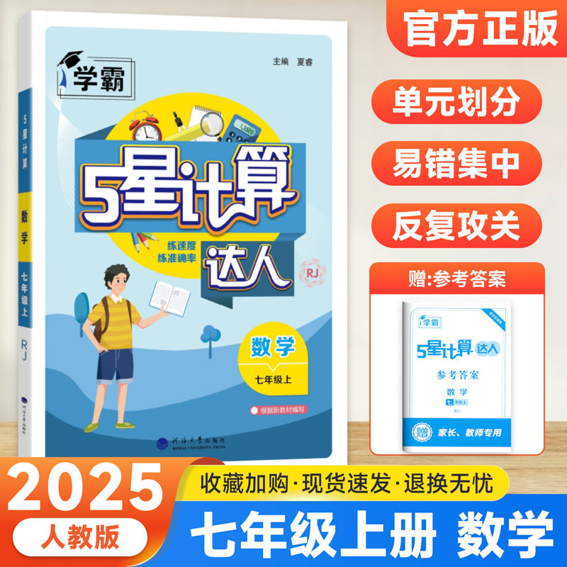 📚 经纶学霸五星计算达人2026新版初中生七年级八年级上册下册数学通用版人教版苏教版浙教版初一初二同步练习专项训练计算能手5星