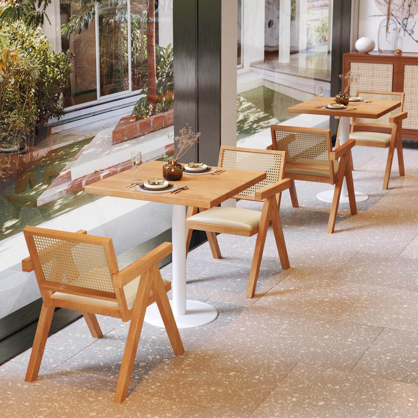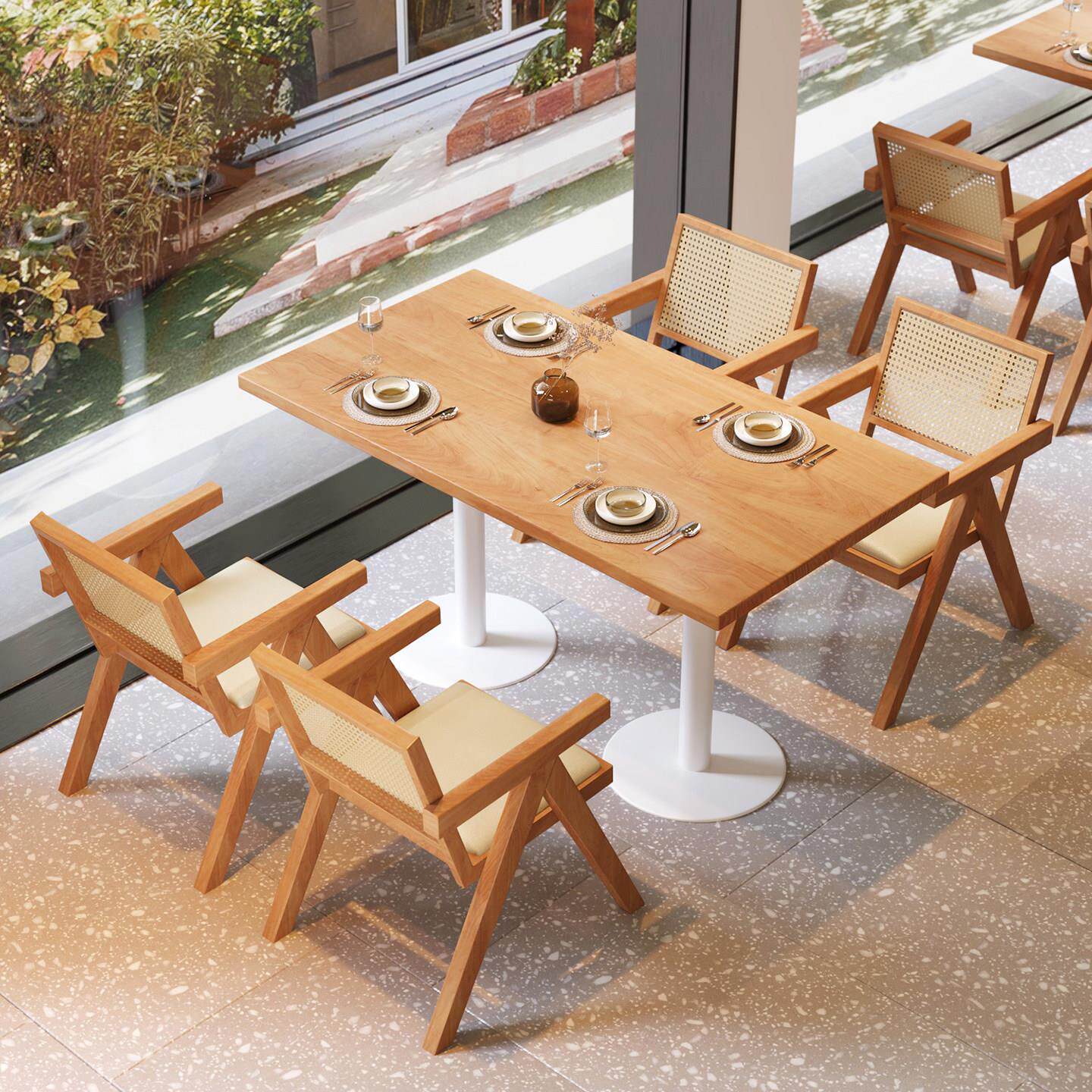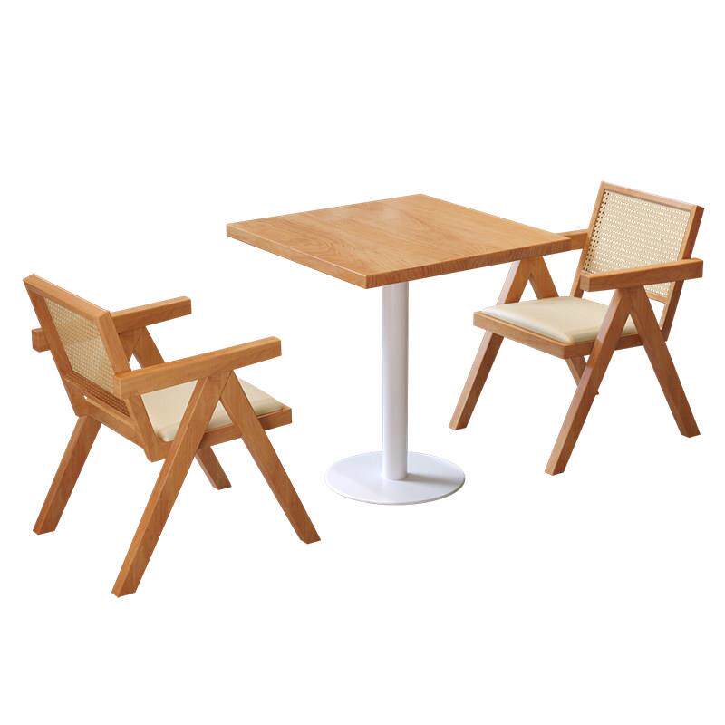 📚 铁艺实木方桌小吃餐饮店方桌椅组合 网红2人单柱餐桌可定制1056