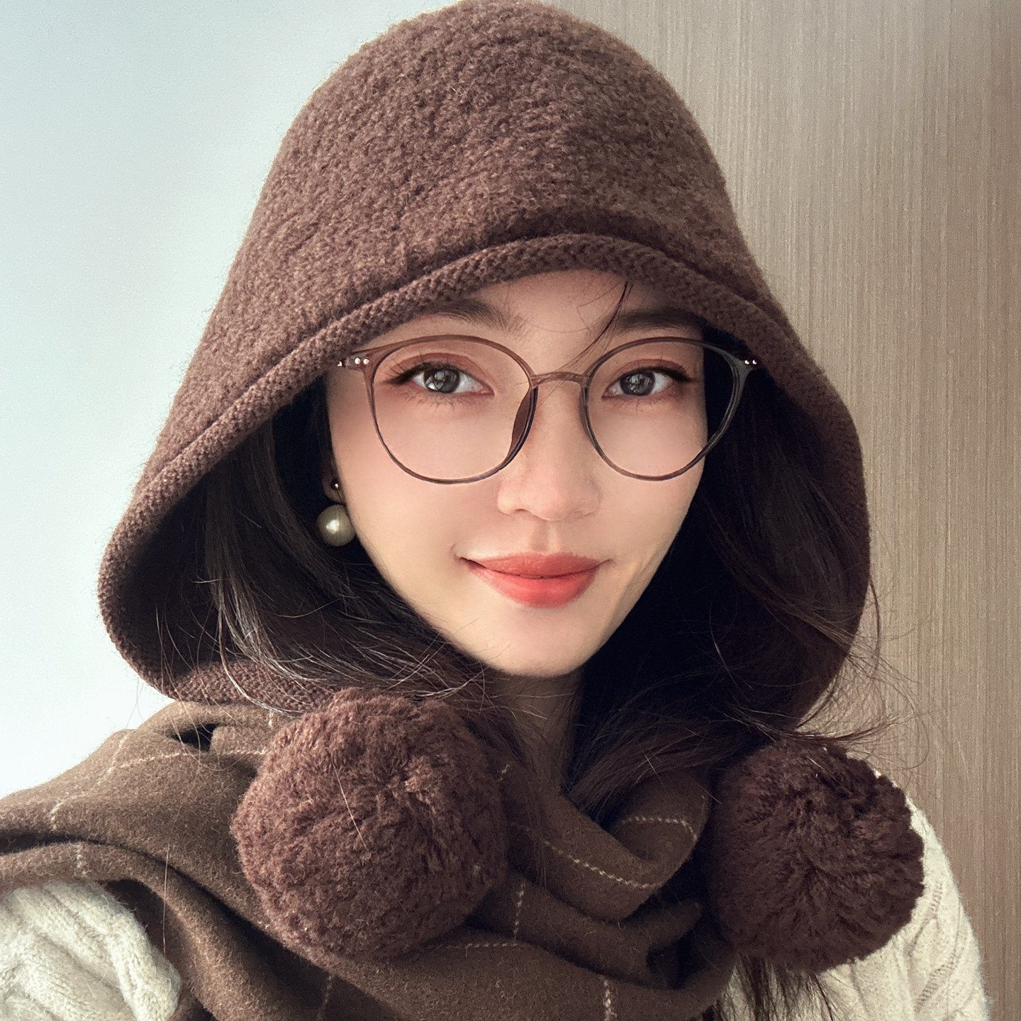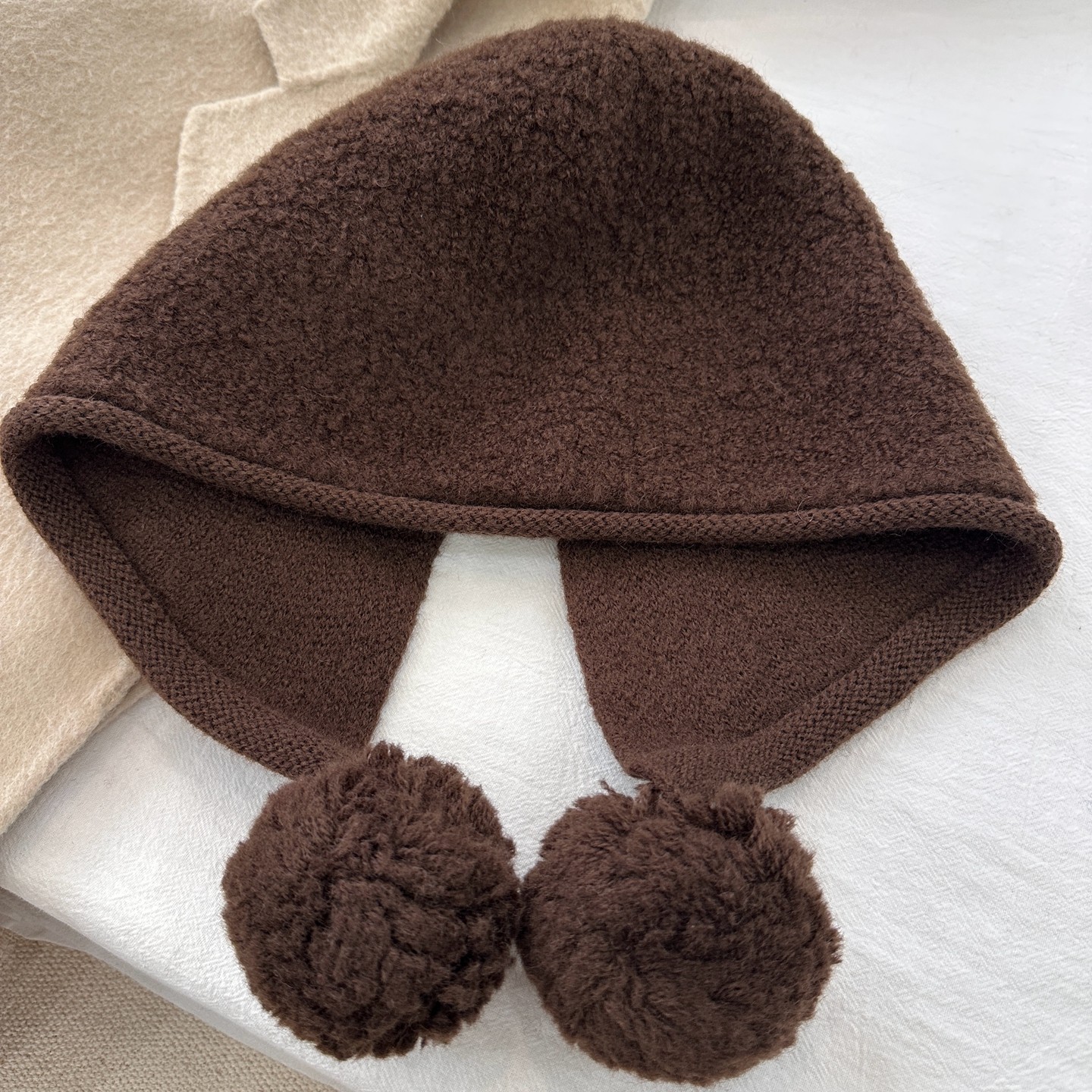 📚 25冬季/松弛感大头围100%纯羊毛颗粒感护耳帽女吊球针织拉法帽子