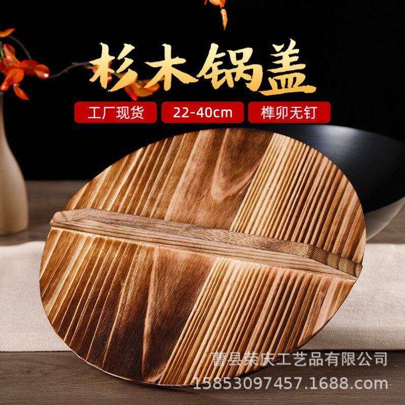 📚 32cm锅盖通用加厚土灶杉木手工厨房传统茶壶盖儿柴火灶盖子大锅盖