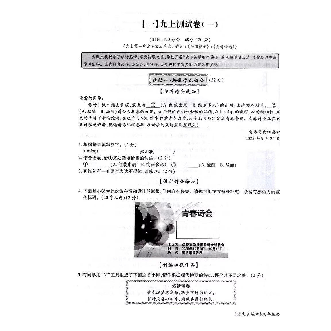 📚 2026深圳专版语文讲练考九9年级全一册初中初三知识梳理同步练习南方日报出版社附赠练习册+专题复习+课前默写本+测试卷+参考答案
