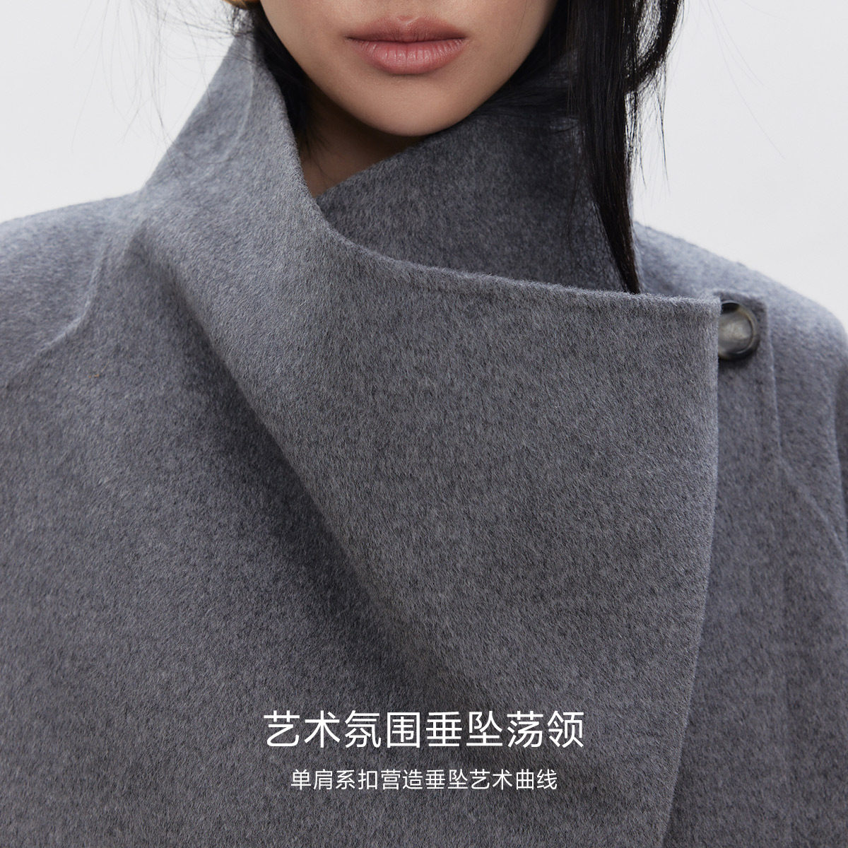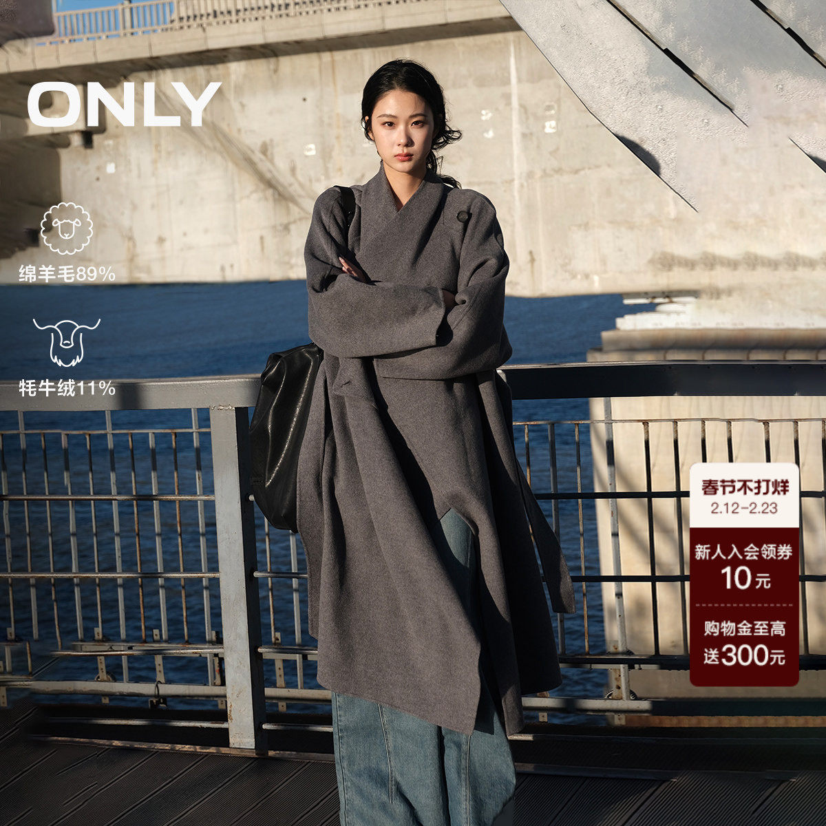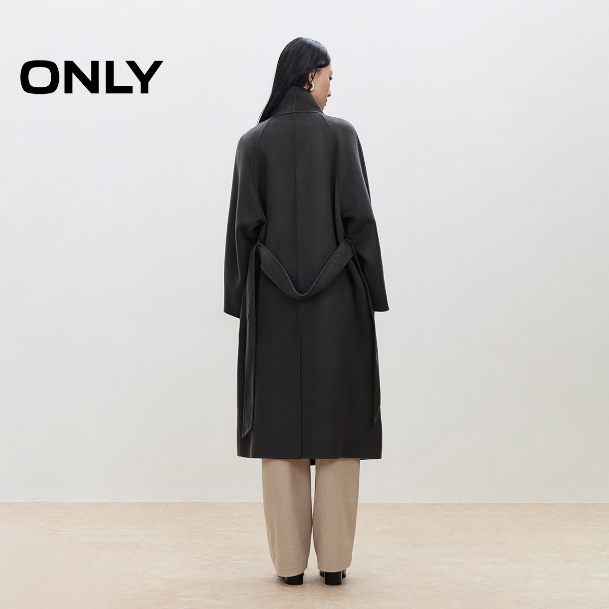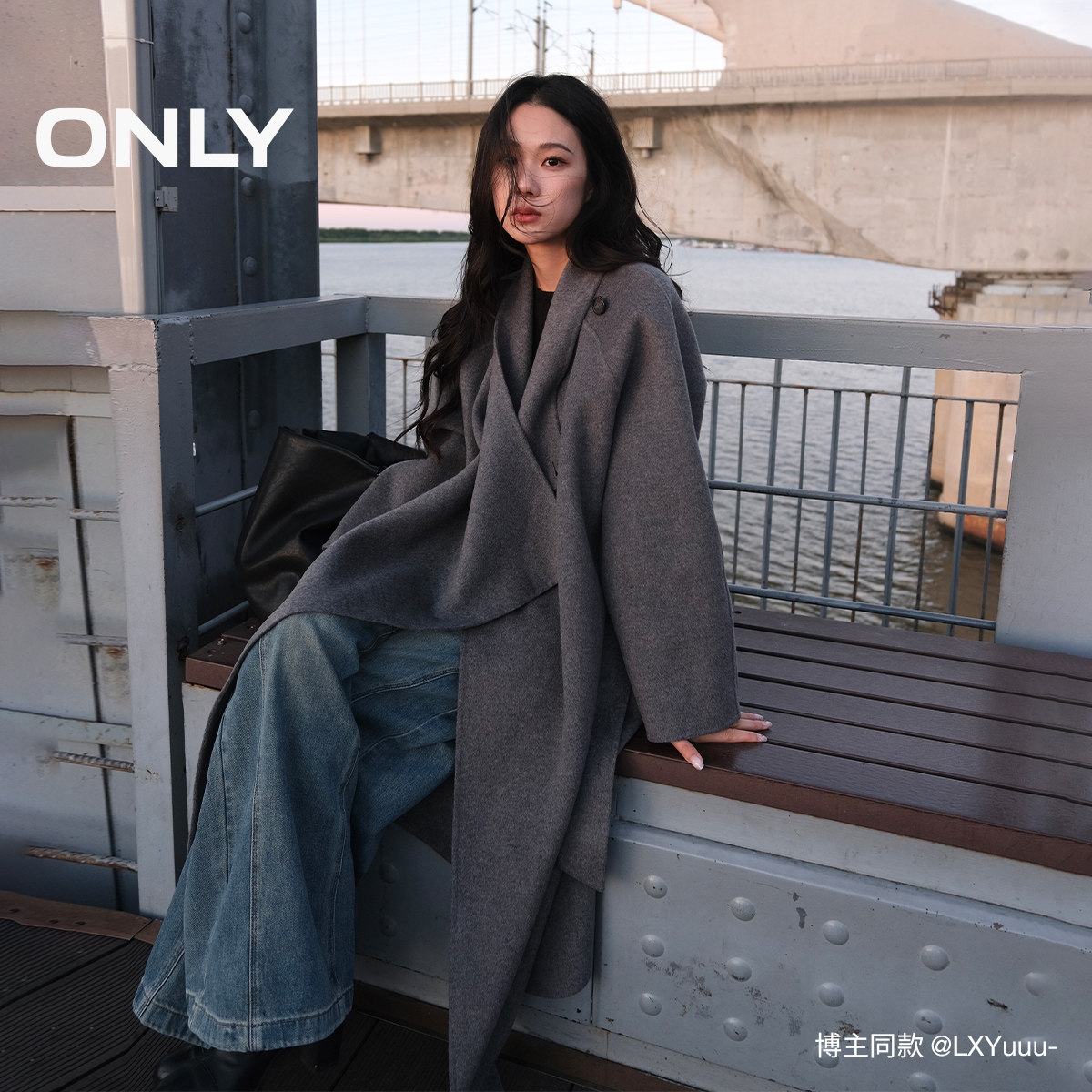 📚 【ONLY奥莱】春款垂坠荡领含绵羊毛双面呢外套中长款毛呢大衣女