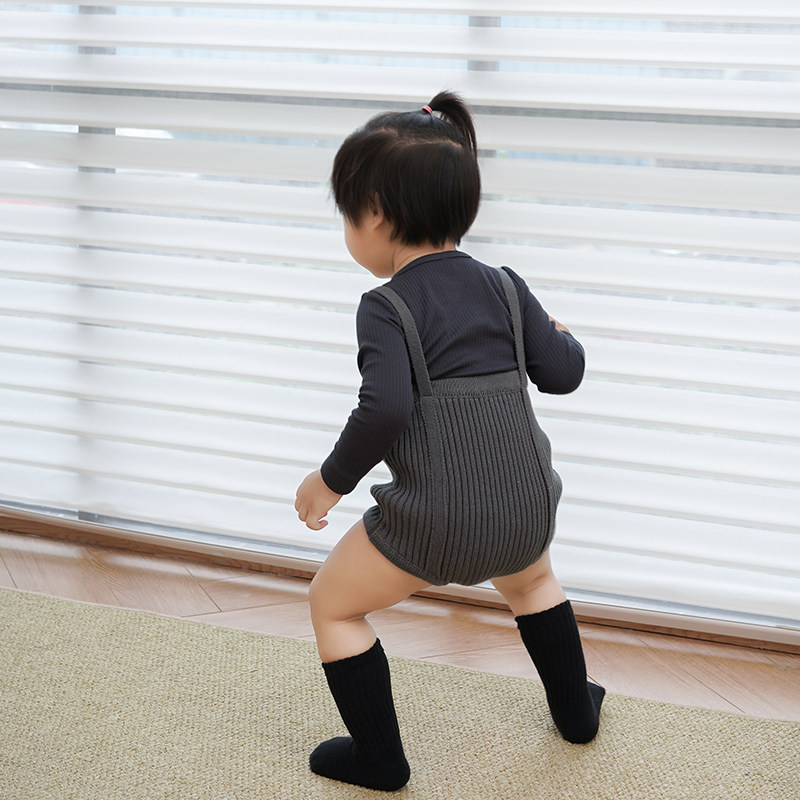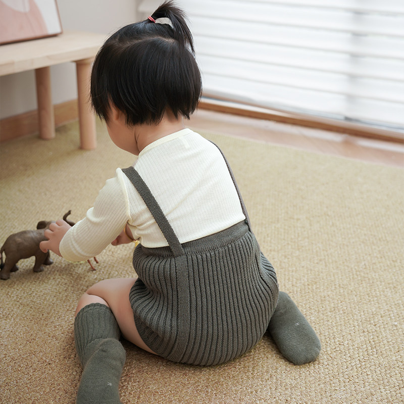 📚 拉波米婴幼儿纯棉针织背带裤春秋款童装打底裤男女宝宝连体短裤子