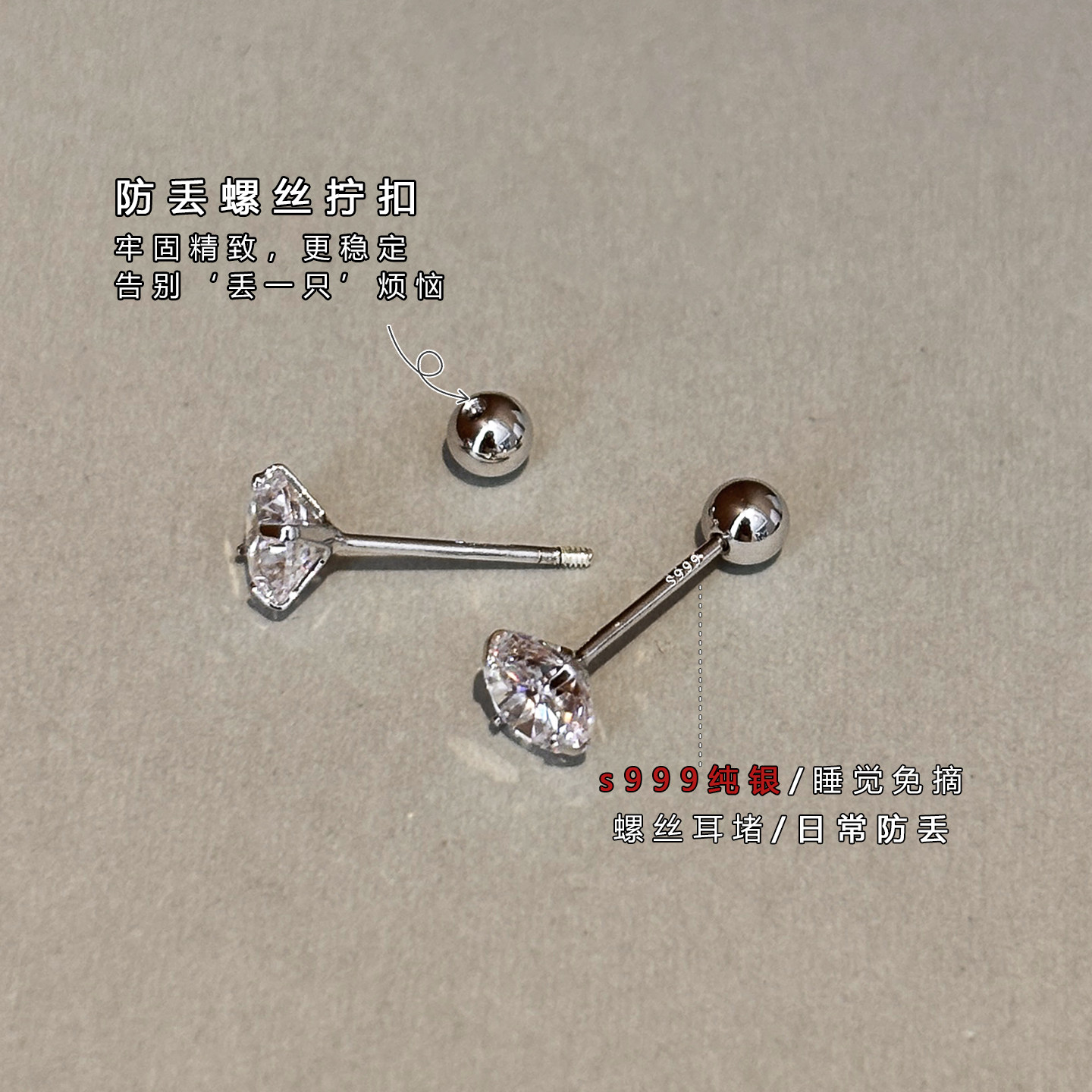 📚 999纯银针爆闪华子钻石小耳钉耳骨钉养耳洞耳蜗睡觉免摘耳环耳饰