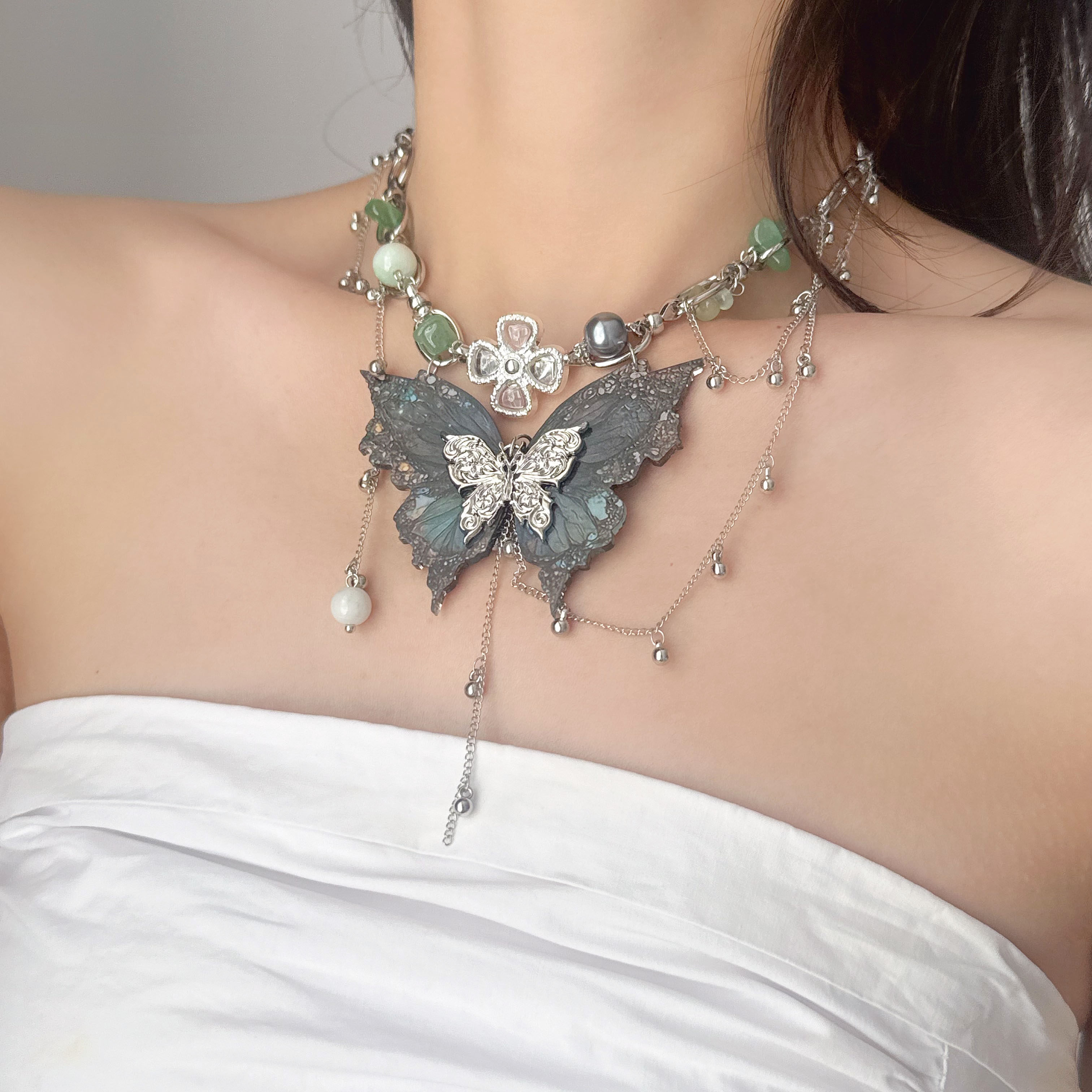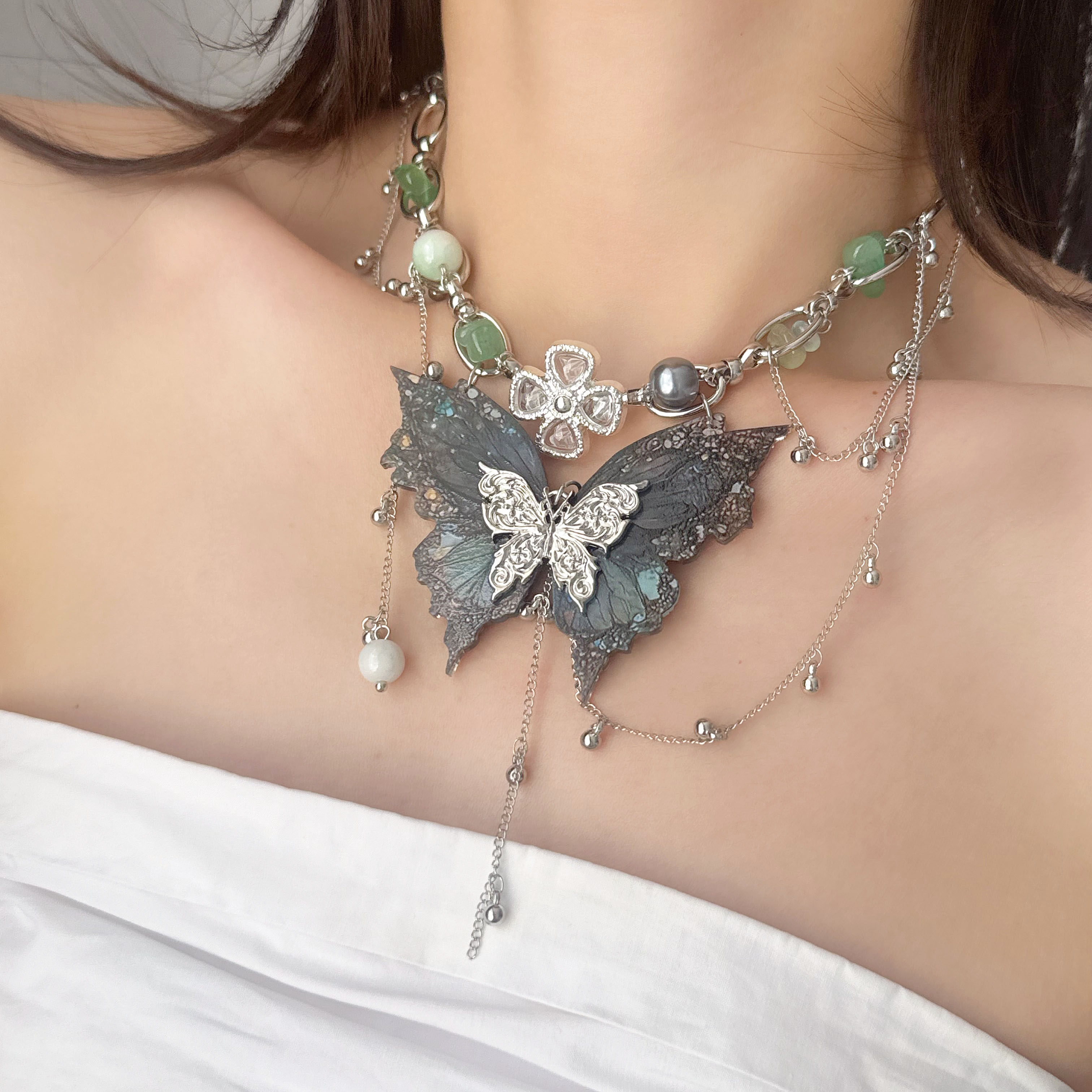 📚 韩系重工金属蝴蝶项链女高级感甜酷辣妹风锁骨链气质高奢颈链配饰