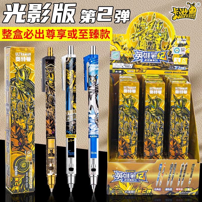📚 卡游奥特曼自动铅笔盲盒第2弹光影版闪耀赛罗按动式活动铅笔学生