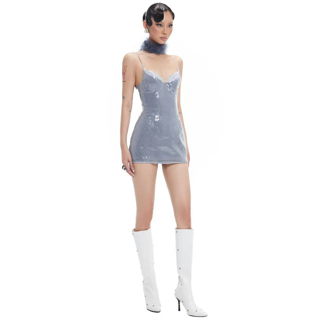 📚 WEIRD PUSS 法式摩登BM辣妹亮片吊带连衣裙女 围脖设计修身包臀裙
