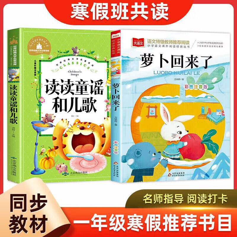 📚 读读童谣和儿歌一年级必读正版萝卜回来了课外书籍大头儿子小头爸爸精编版下学期教师推荐儿童绘本小学1年级注音版寒假必读课外书