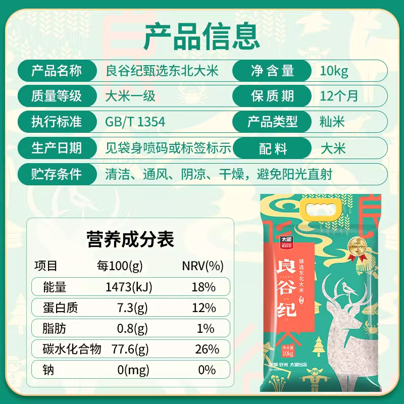 📚 太粮良谷纪东北大米圆粒珍珠米优质10kg20斤装煮饭煮粥家用米