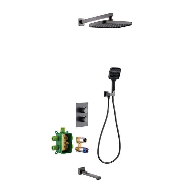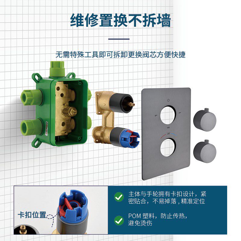 📚 pcooy枪灰色暗装隐藏预埋嵌入墙式一体热熔增压恒温淋浴花洒套件