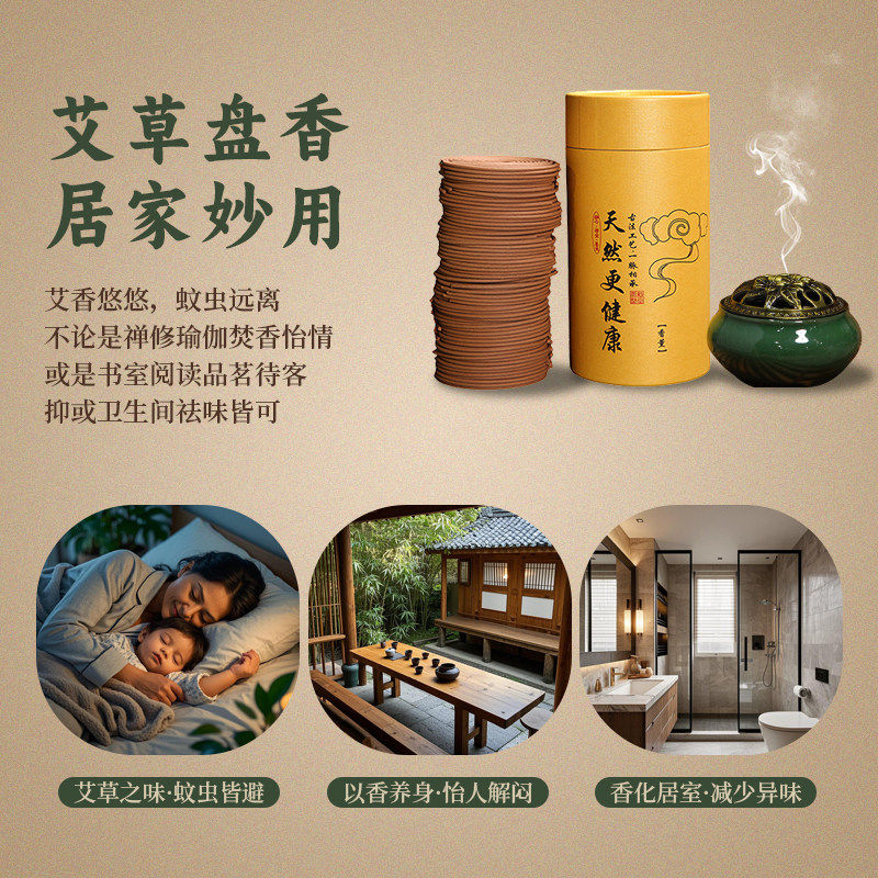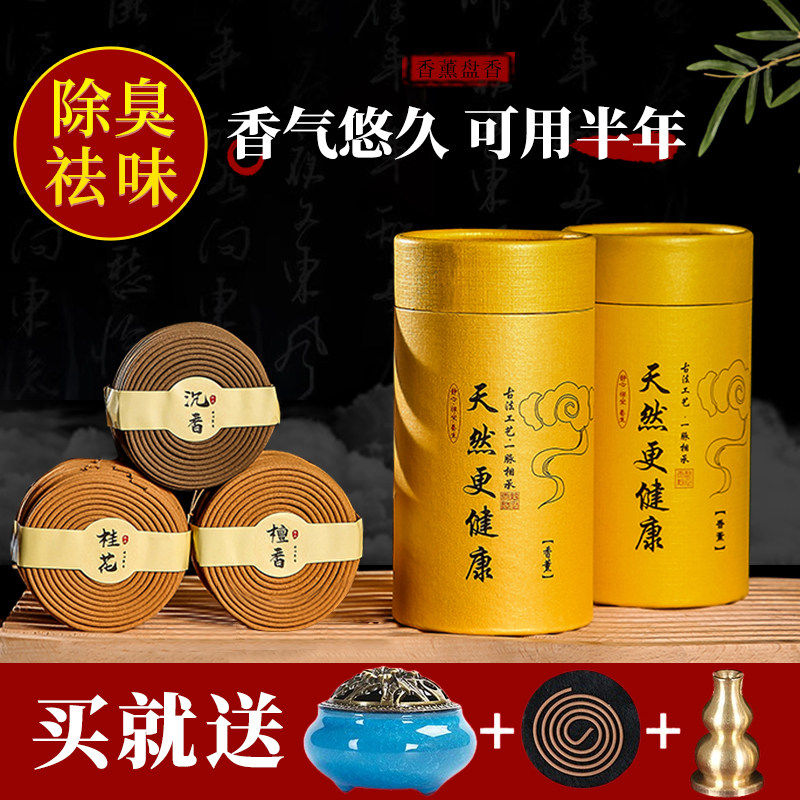 📚 檀香盘香艾草非驱蚊香卫生间厕所除臭味净化空气沉香卧房安寝好眠