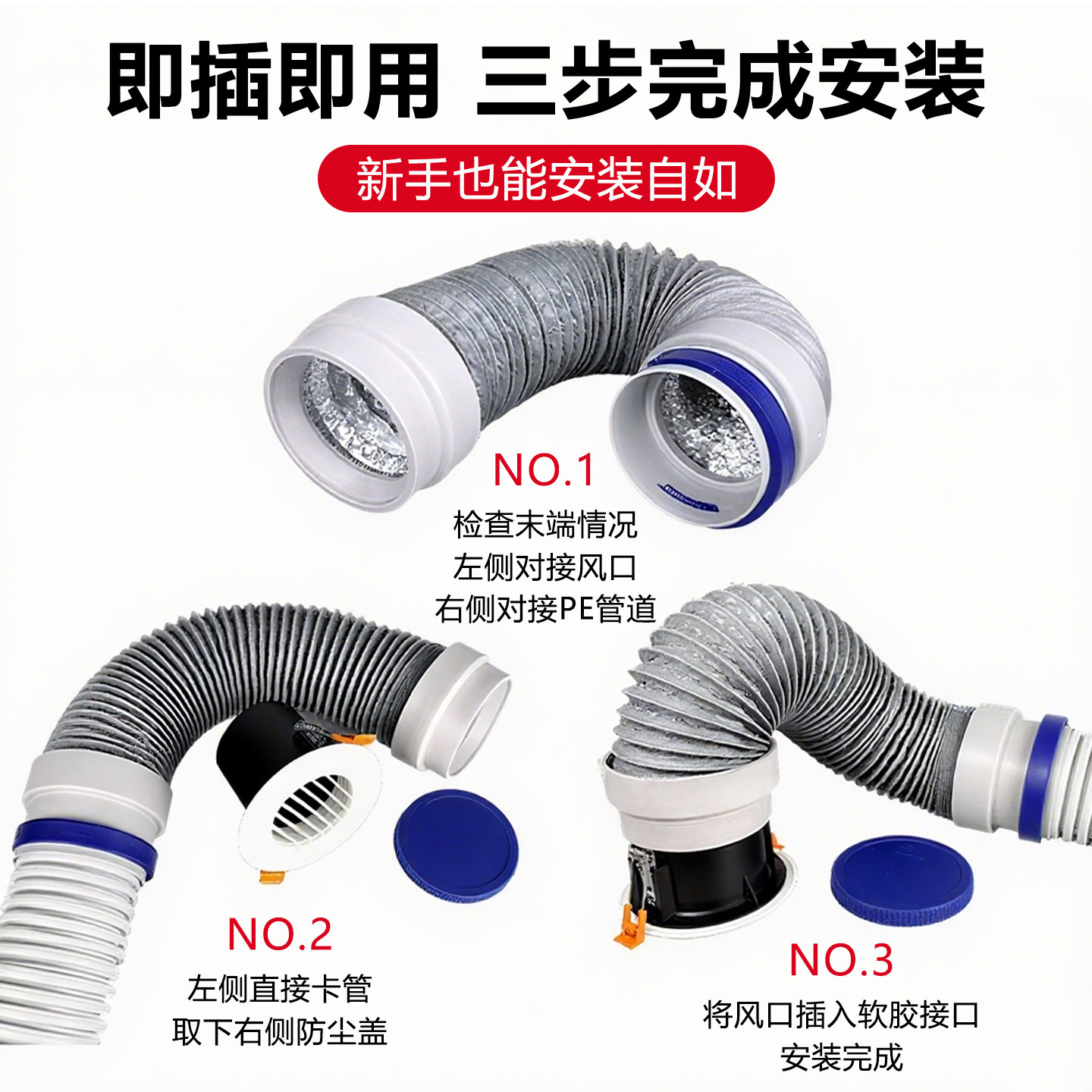 📚 新风系统末端软管75弹性110室内出风口软连接PE管道配件接头消音