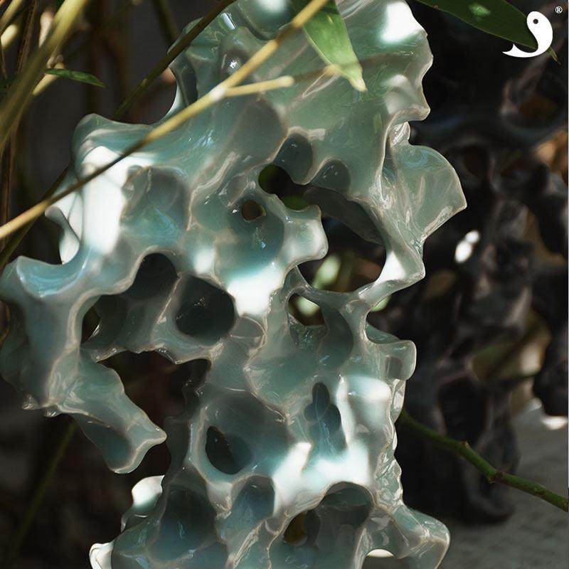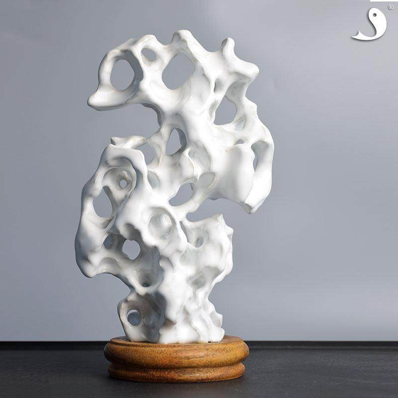📚 陶瓷太湖石山子摆件枯山水石头纯手工镂空雕刻假山石茶席笔架摆件