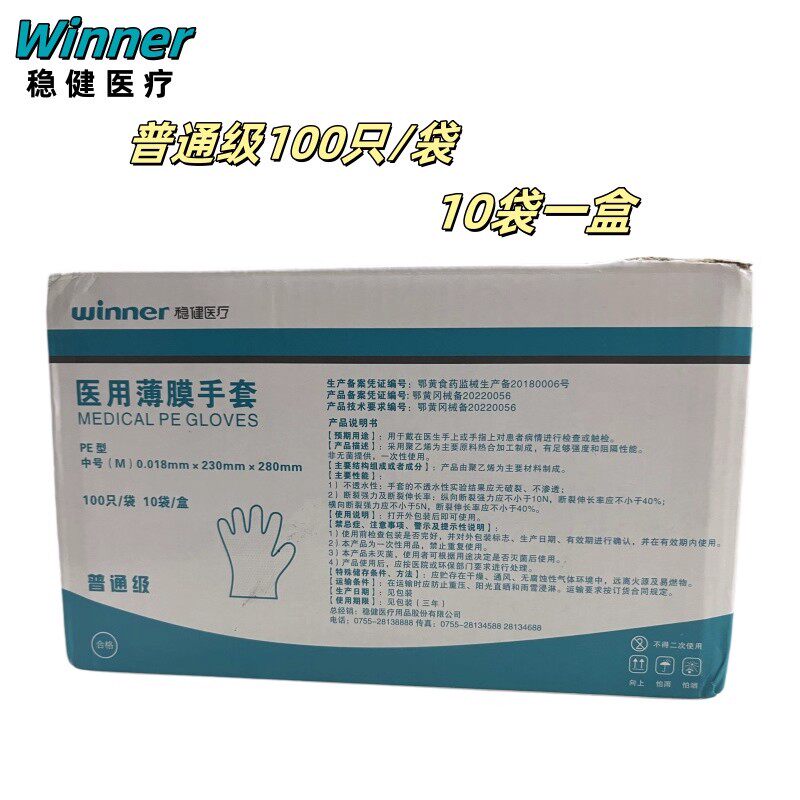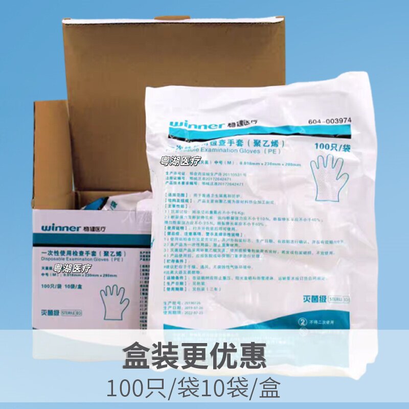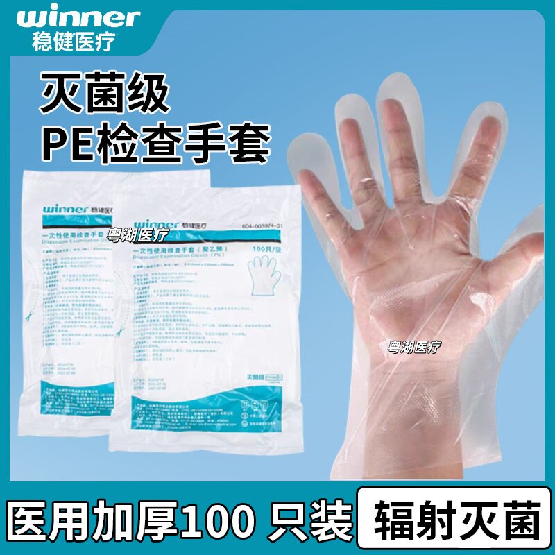 📚 winner稳健医疗医用一次性手套灭菌级薄膜透明防滑 100只/袋
