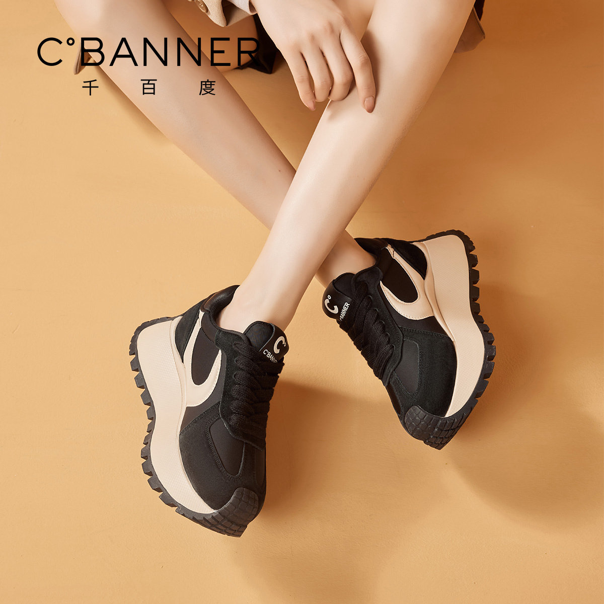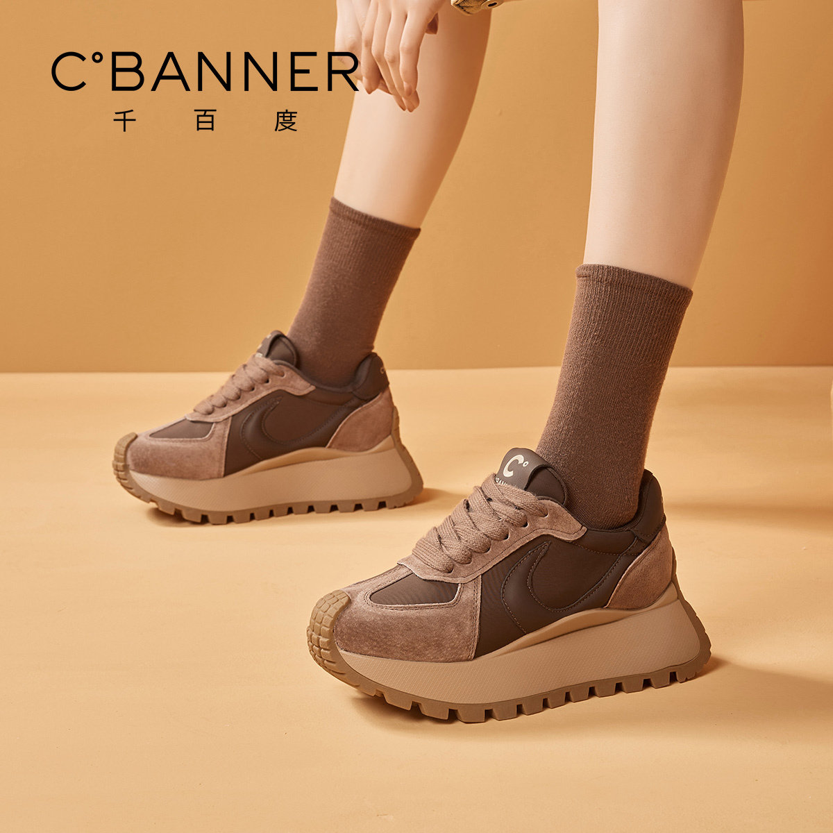 📚 千百度复古阿甘鞋女秋冬新款厚底增高华夫鞋运动休闲鞋时尚女鞋子