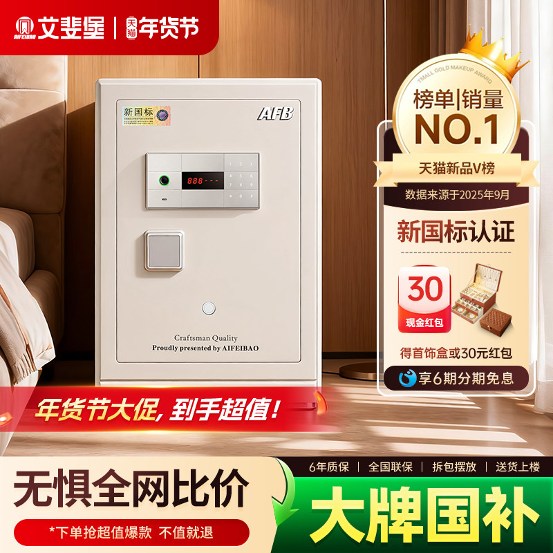 📚 艾斐堡保险柜家用智能WIFI保险箱3S国标认证指纹密码小型床头柜办公室防盗全钢大型文件柜商用入衣柜大容量