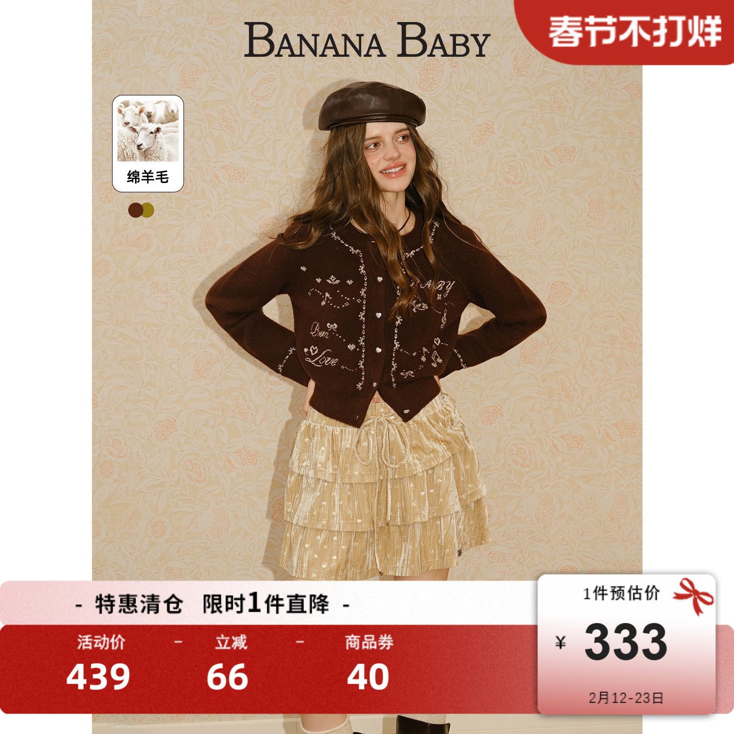 28¥ MF278 XD82UOHoqCv¥ https://m.tb.cn/h.7EWdDiu 【张小婉 孙雪宁同款】BANANA BABY2025年冬新款绵羊毛刺绣针织衫 --------------------- 【原售价】439元 【优惠券】40元 【券后价】399元。