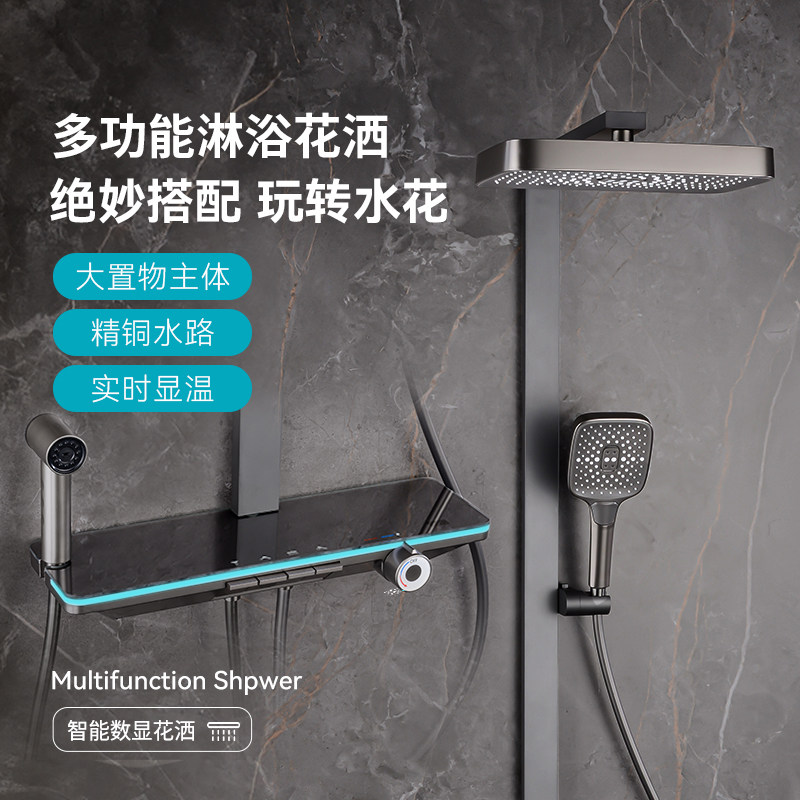 📚 JOMOW恒温淋浴花洒套装全铜增压大置物架温度数显家用洗澡喷头