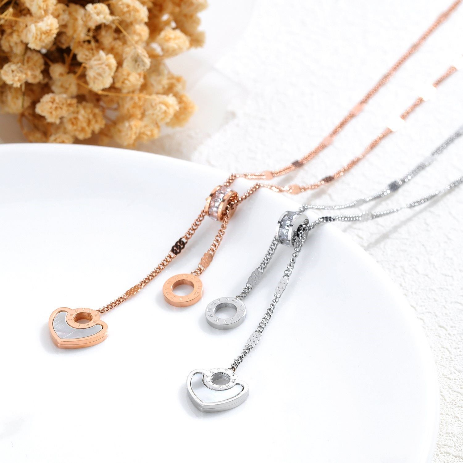 📚 Titanium Steel Roman Numeric Clavicle Chain Necklace