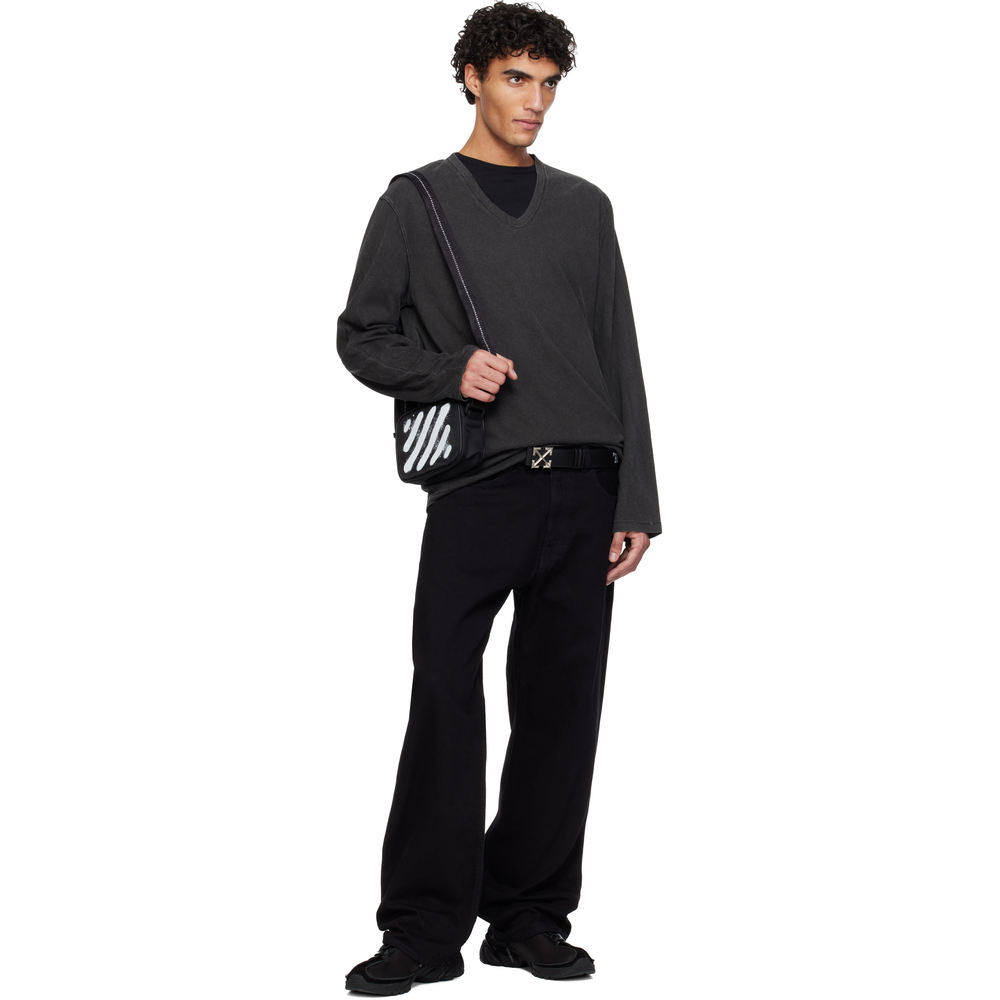 📚 1h可退 潮奢 off-white 男士 黑色 Arrow Quote Leather 腰带 OMR