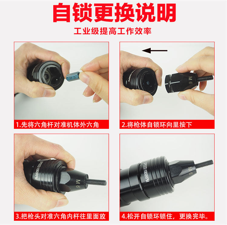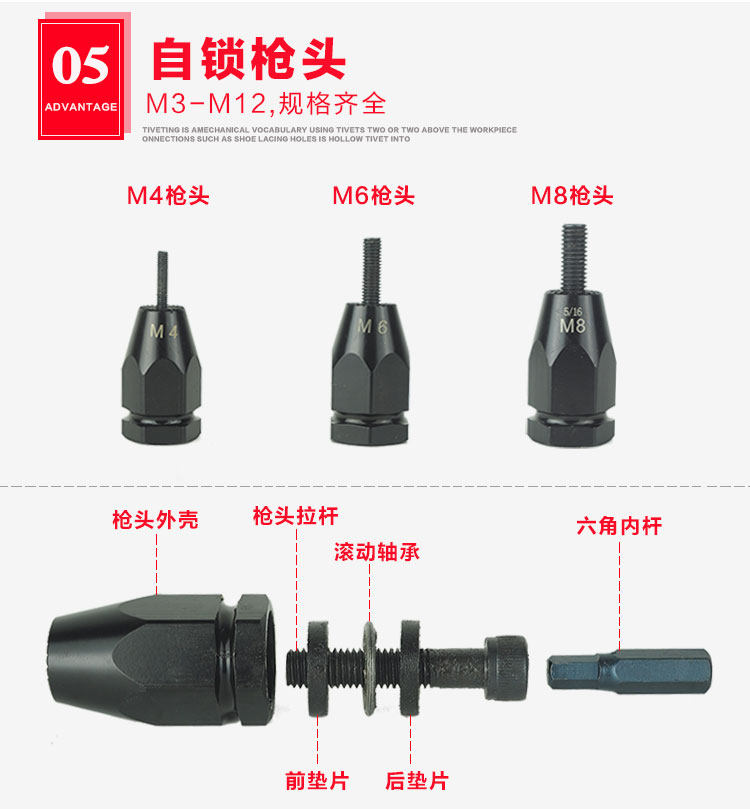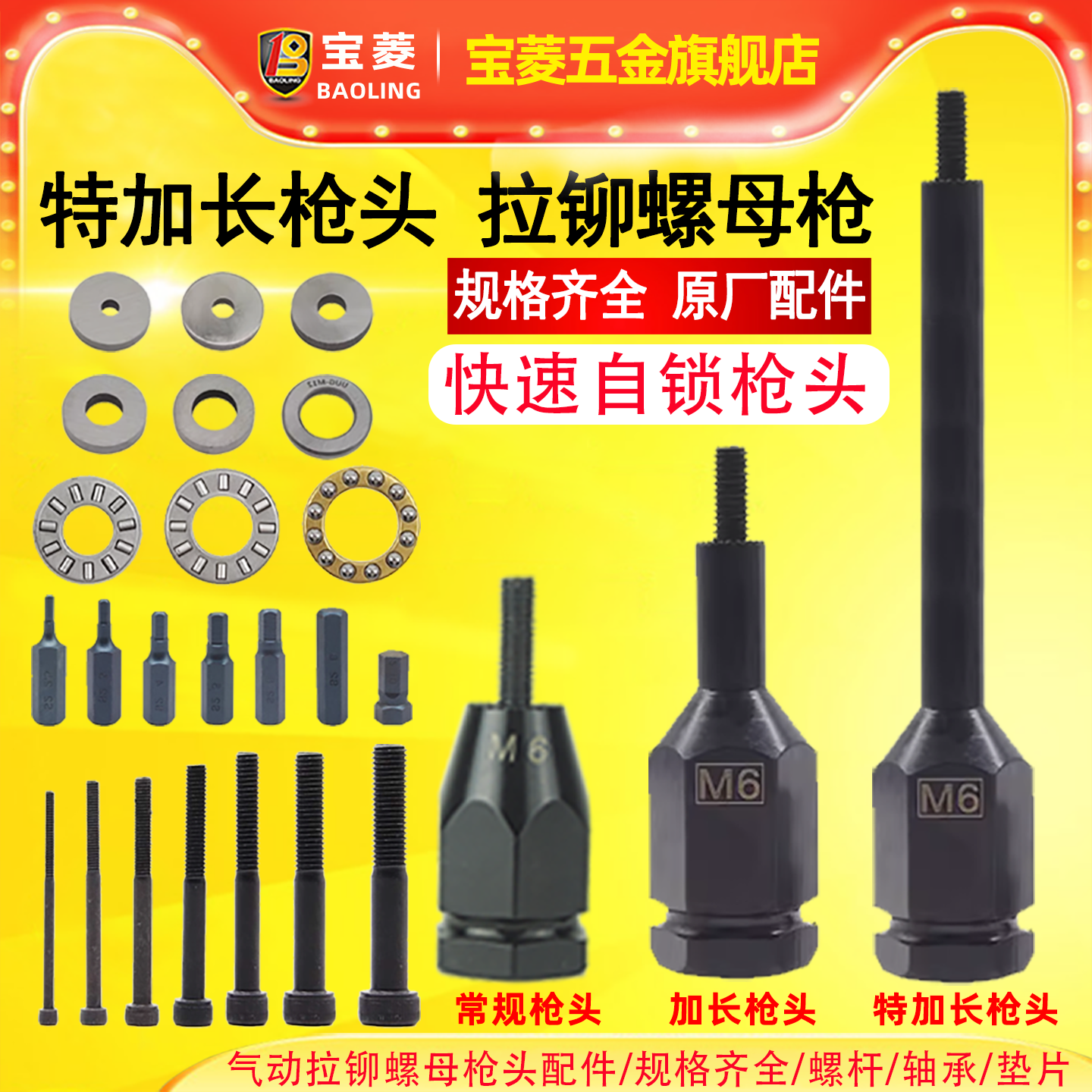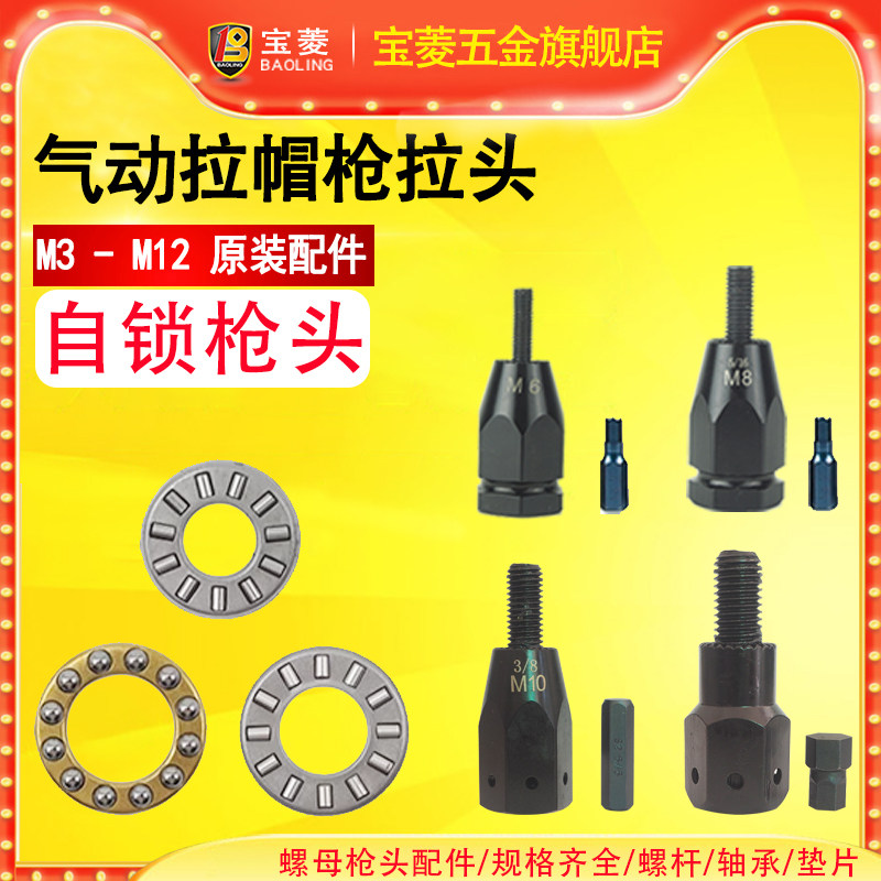 📚 气动螺母枪拉头拉帽枪枪头配件拉铆螺杆拉杆M8轴承垫片六角连接杆