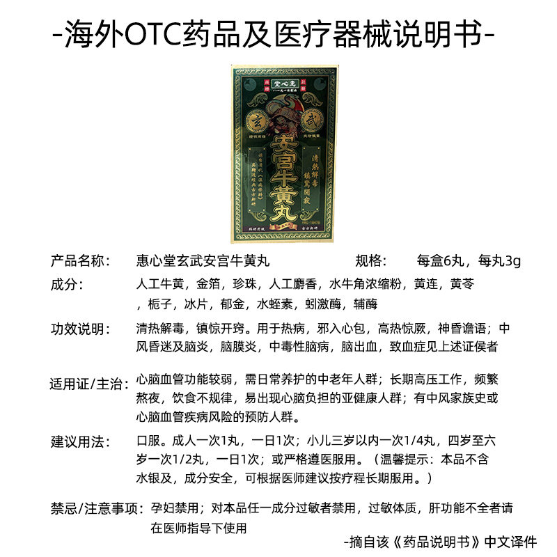 📚 香港发货12丸香港惠心堂玄武安宫牛黄丸香港版原装进口正品旗舰店