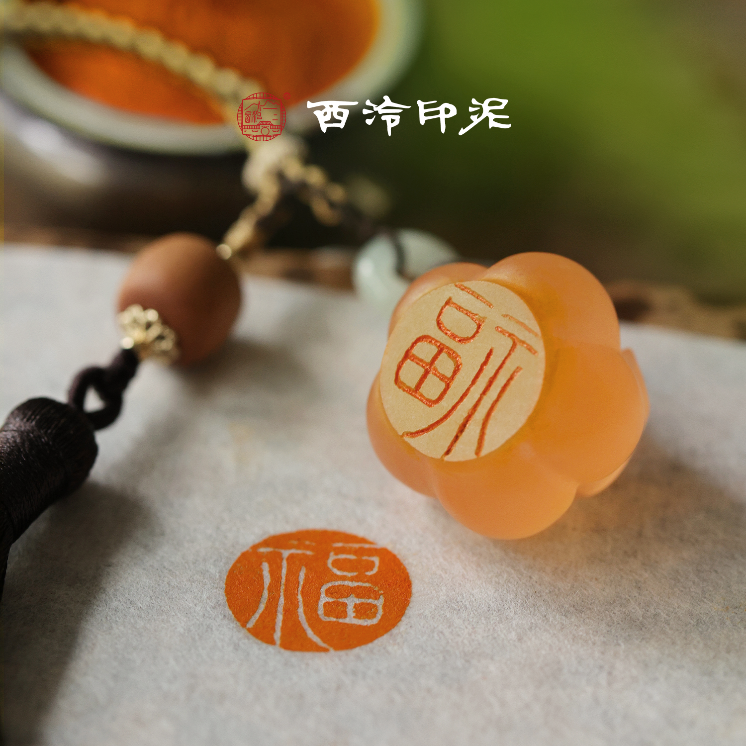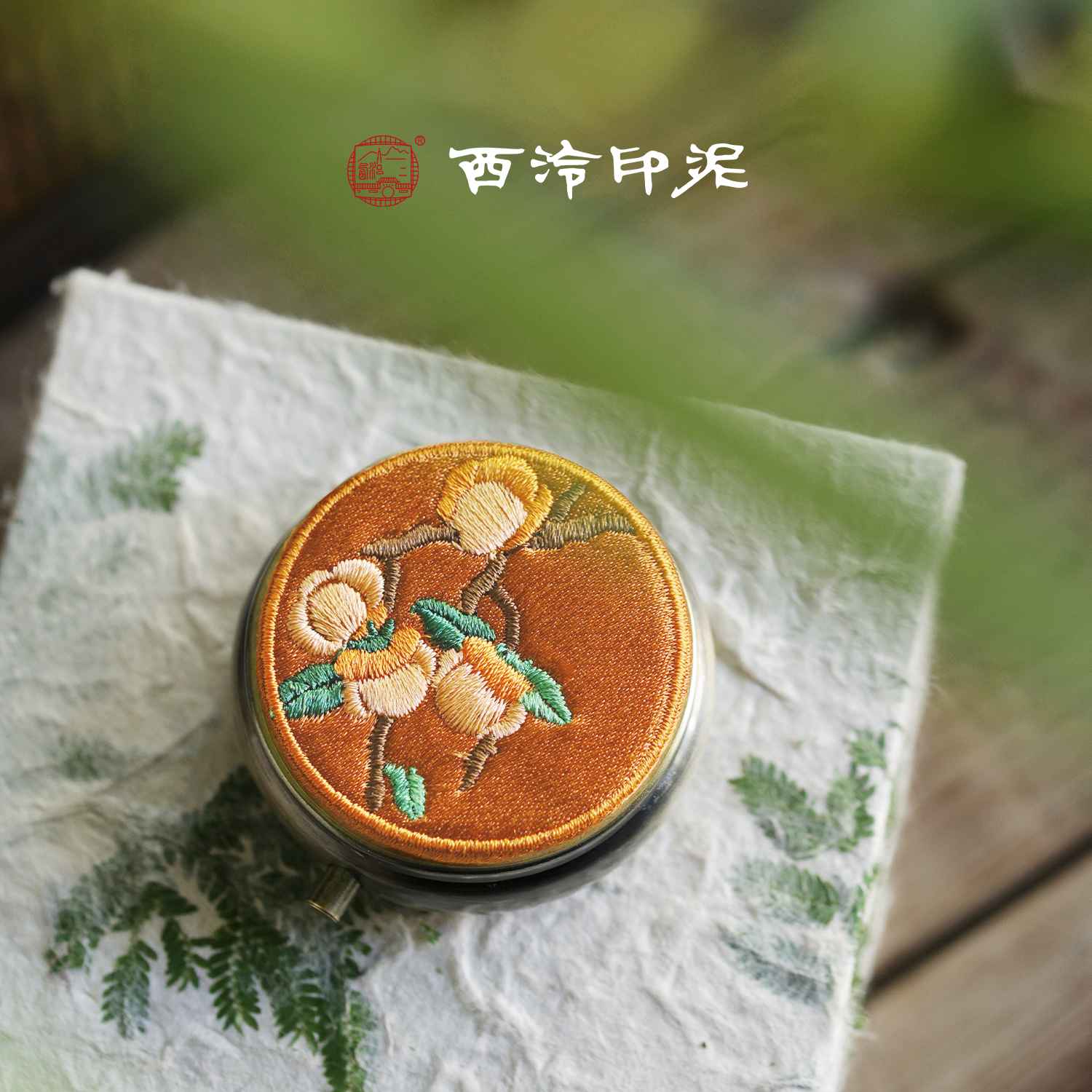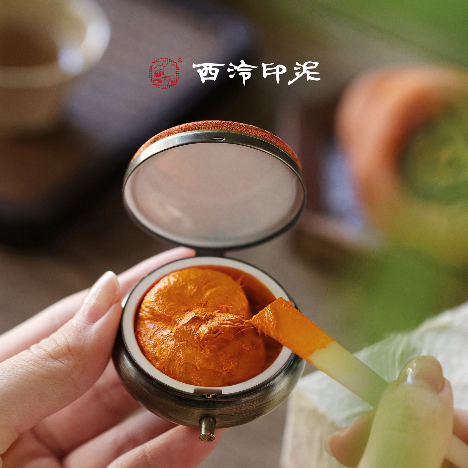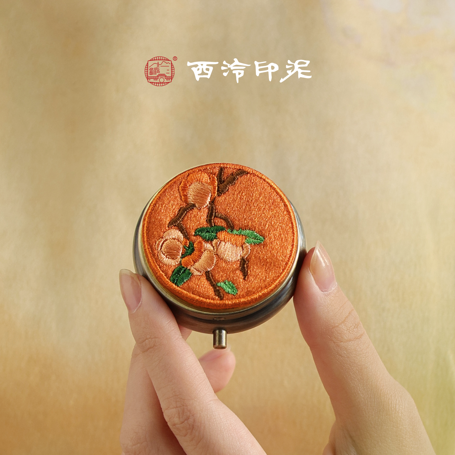 📚 西泠印泥柿柿如意刺绣印泥橙色朱磦书画闲章专用便携印泥盒可爱女生礼物高级感生日礼物书画礼品节日礼物