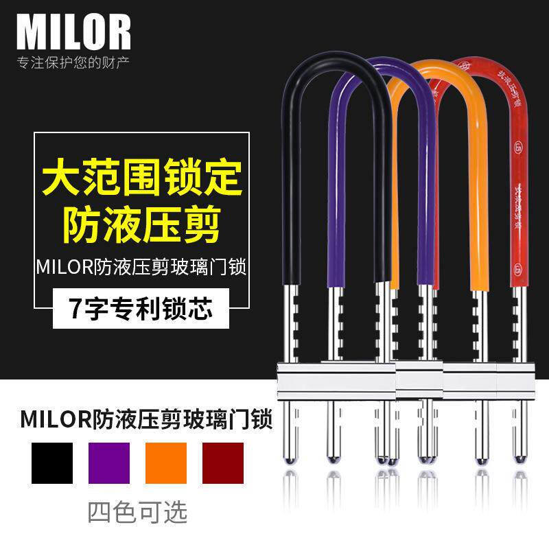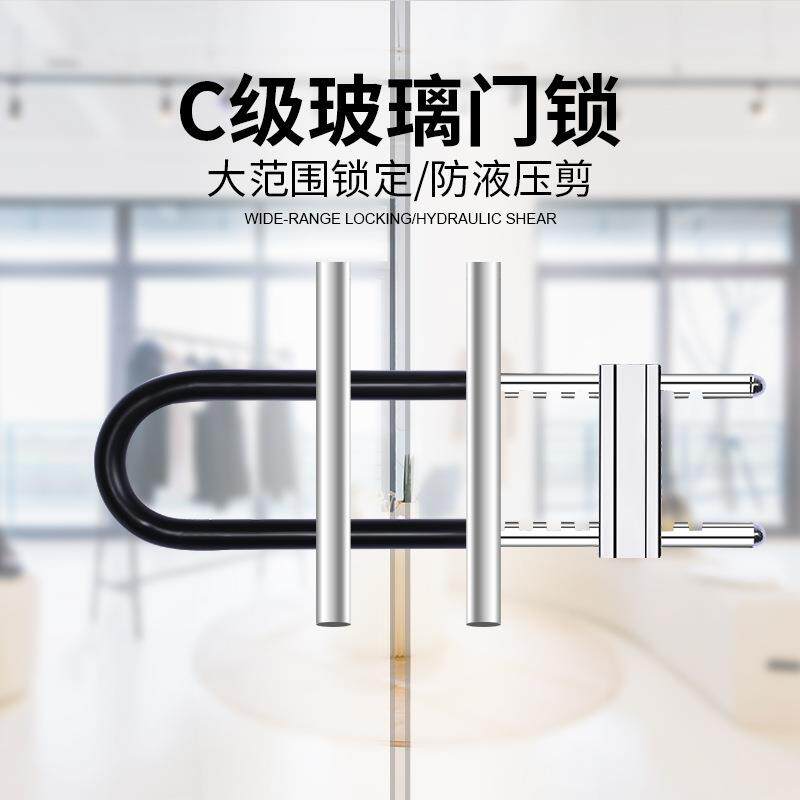 📚 玻璃门U型锁商锁铺门插锁双长门防盗锁具家用形加三板斧U锁通开摩