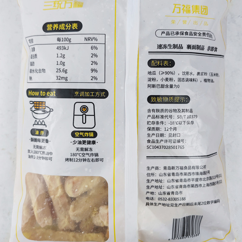📚 三统万福黄金地瓜条1kg甘梅香酥地瓜条油炸商用冷冻小吃半成品