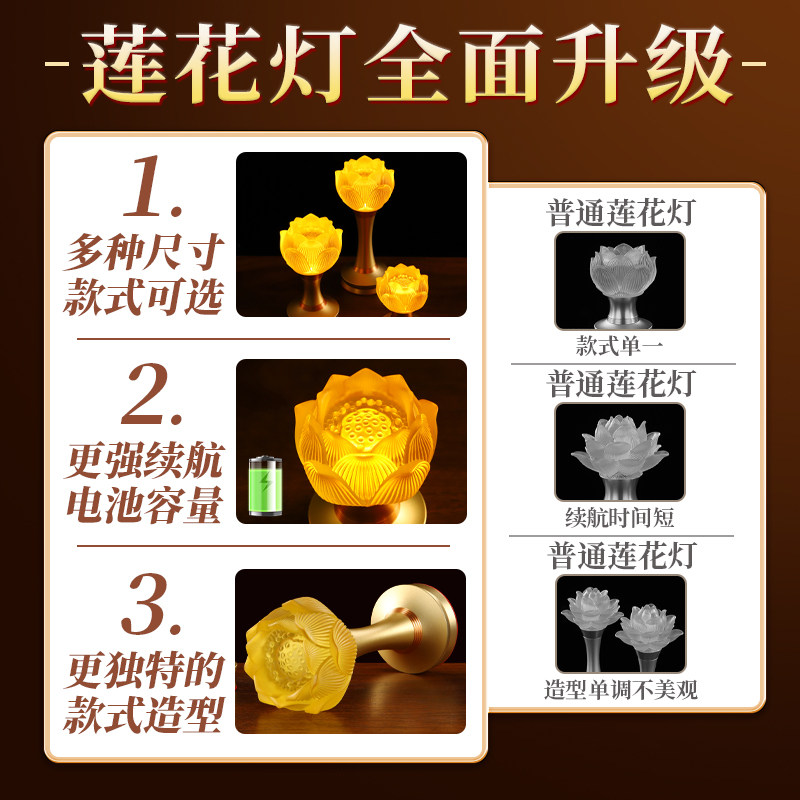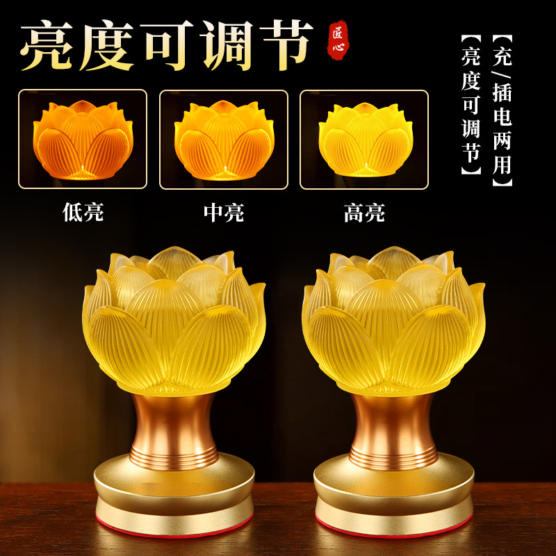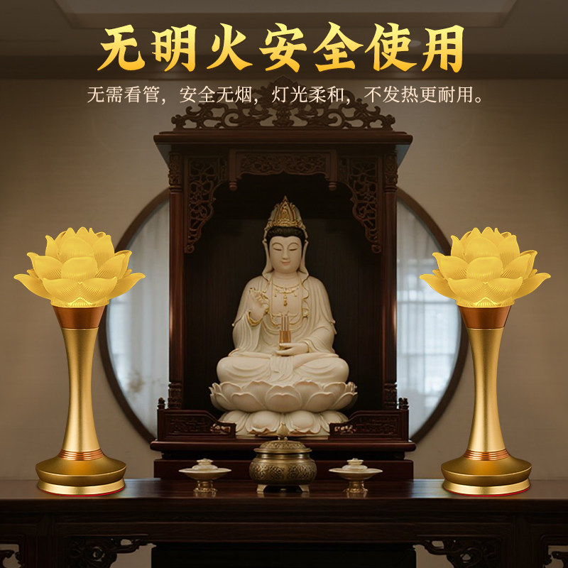 📚 观世音莲花灯家用佛前电供灯长明灯充电2025新款七彩电池供佛灯