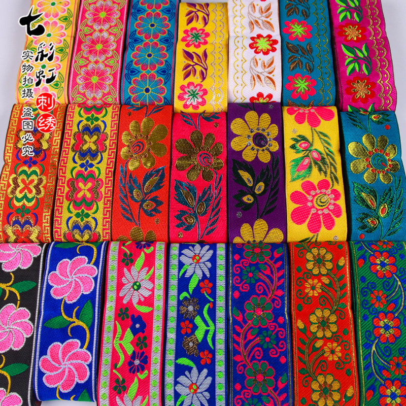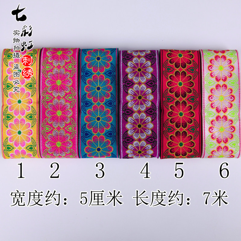 📚 5cm少数民族风辅料花边阿卯苗服花带子服装装饰布料刺绣长条布边