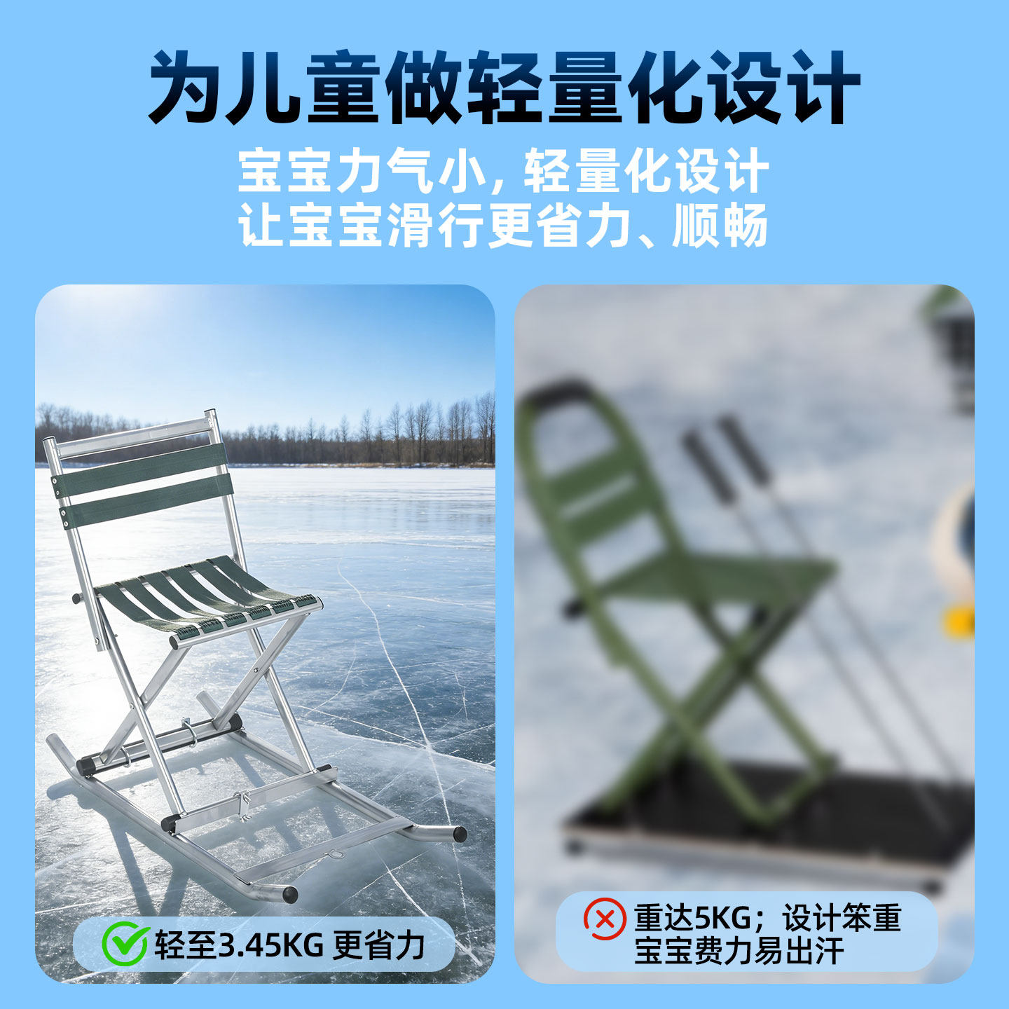 📚 折叠冰车户外成人滑冰车雪地车冰上爬犁冬季冰车双人滑冰车雪橇