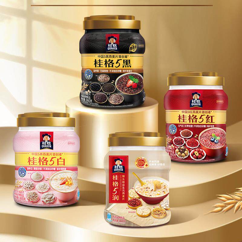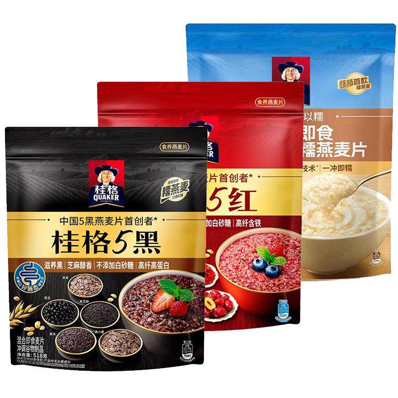 📚 桂格五黑5黑5红混合即食燕麦片非黑黑芝麻糊代餐早餐谷物冲饮健身