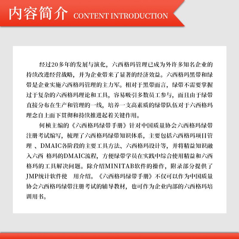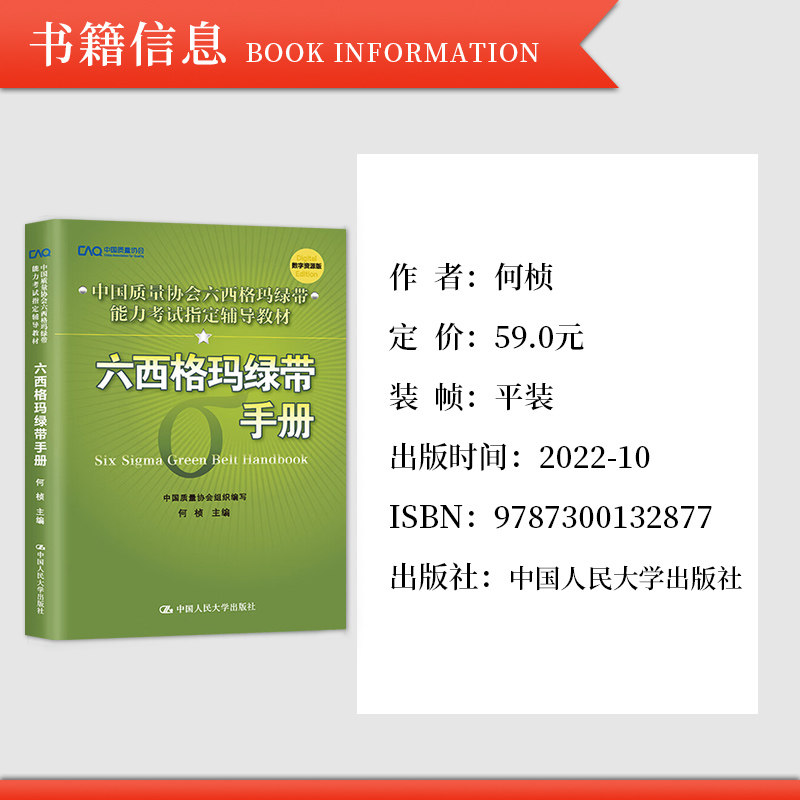 📚 正版六西格玛绿带手册 中国质量协会 何桢 六西格玛绿带注册考试试题黑带考试黄带手册六西格玛手册培训教材书中国人民大学出版社