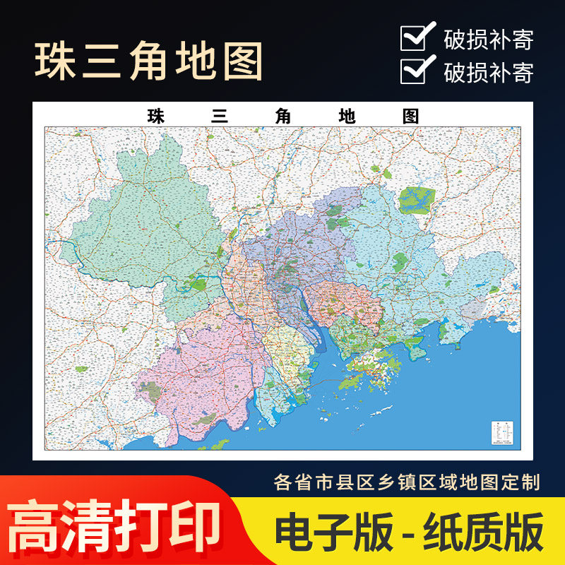 📚 2026新款珠三角地图贴图办公室挂图高清壁贴超大装饰画定