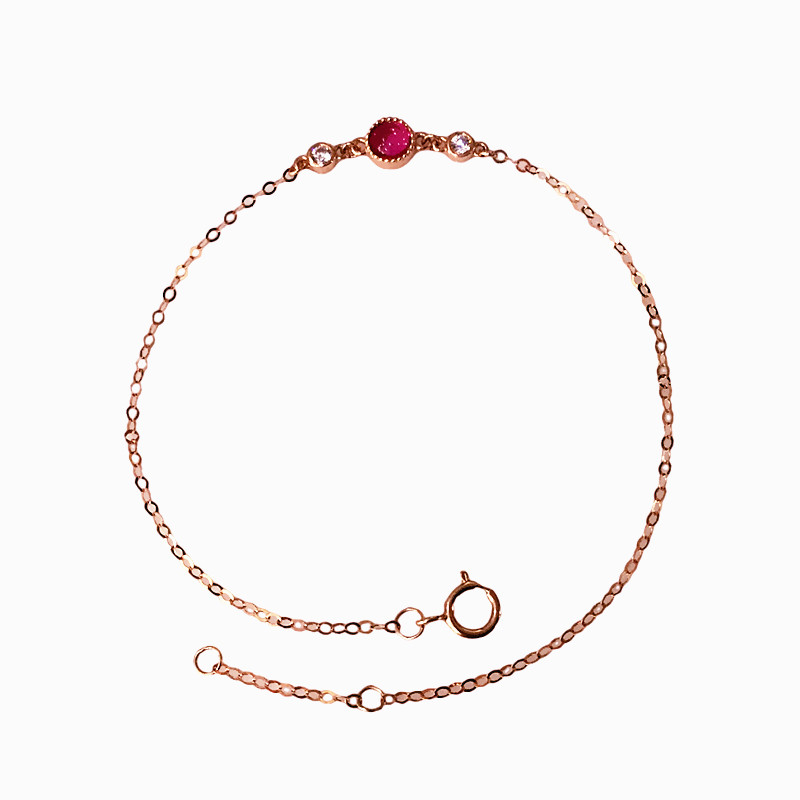 📚 14K玫瑰金红色宝石手链脚链不褪色百搭经典款保真