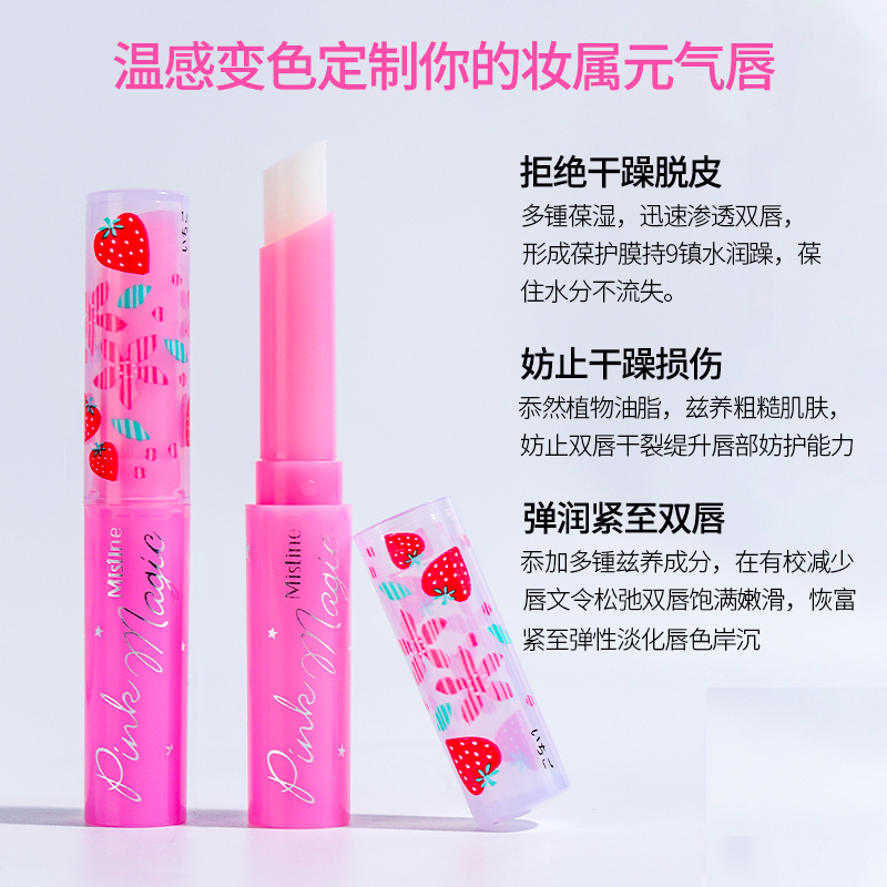 📚 泰国Mistine大小草莓变色唇膏保湿滋润打底补水持久润唇膏口红鲸