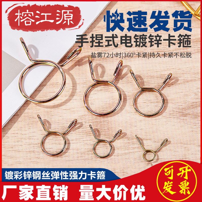 📚 镀彩锌单钢丝弹性强力卡箍手捏式电镀锌卡箍快装强力卡簧弹性喉箍