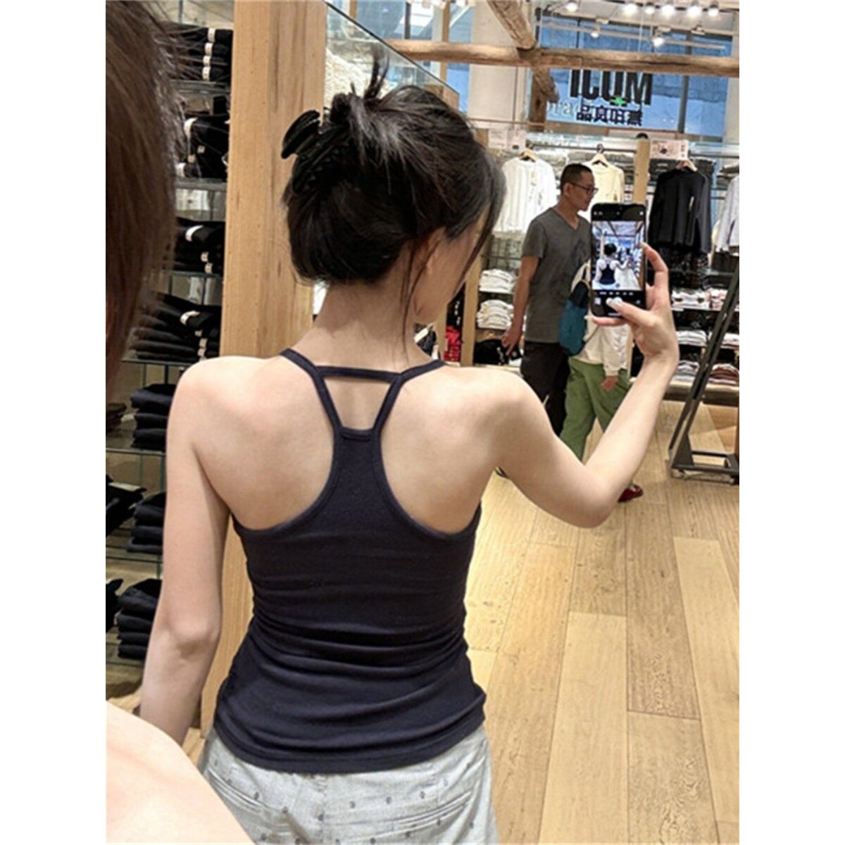 📚 纯欲甜辣妹性感露背收腰显瘦吊带背心女带胸垫瑜伽服百搭健身上衣