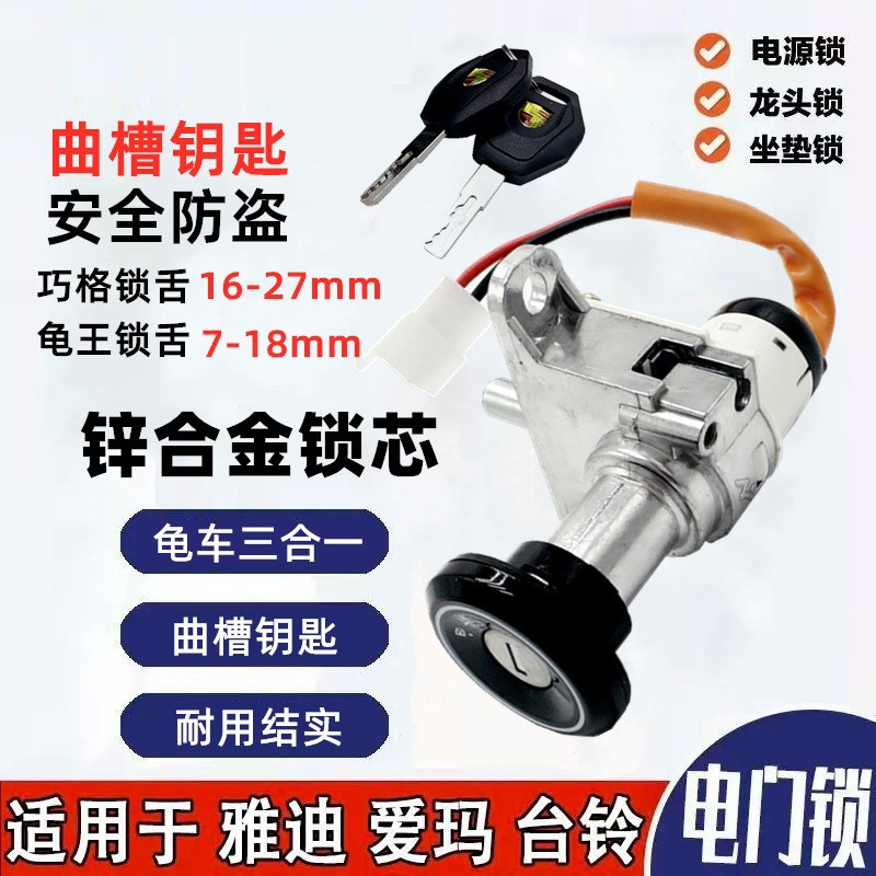 📚 爱玛雅迪台铃电动车电门锁总成巧格小龟电源锁锁芯钥匙开关通用