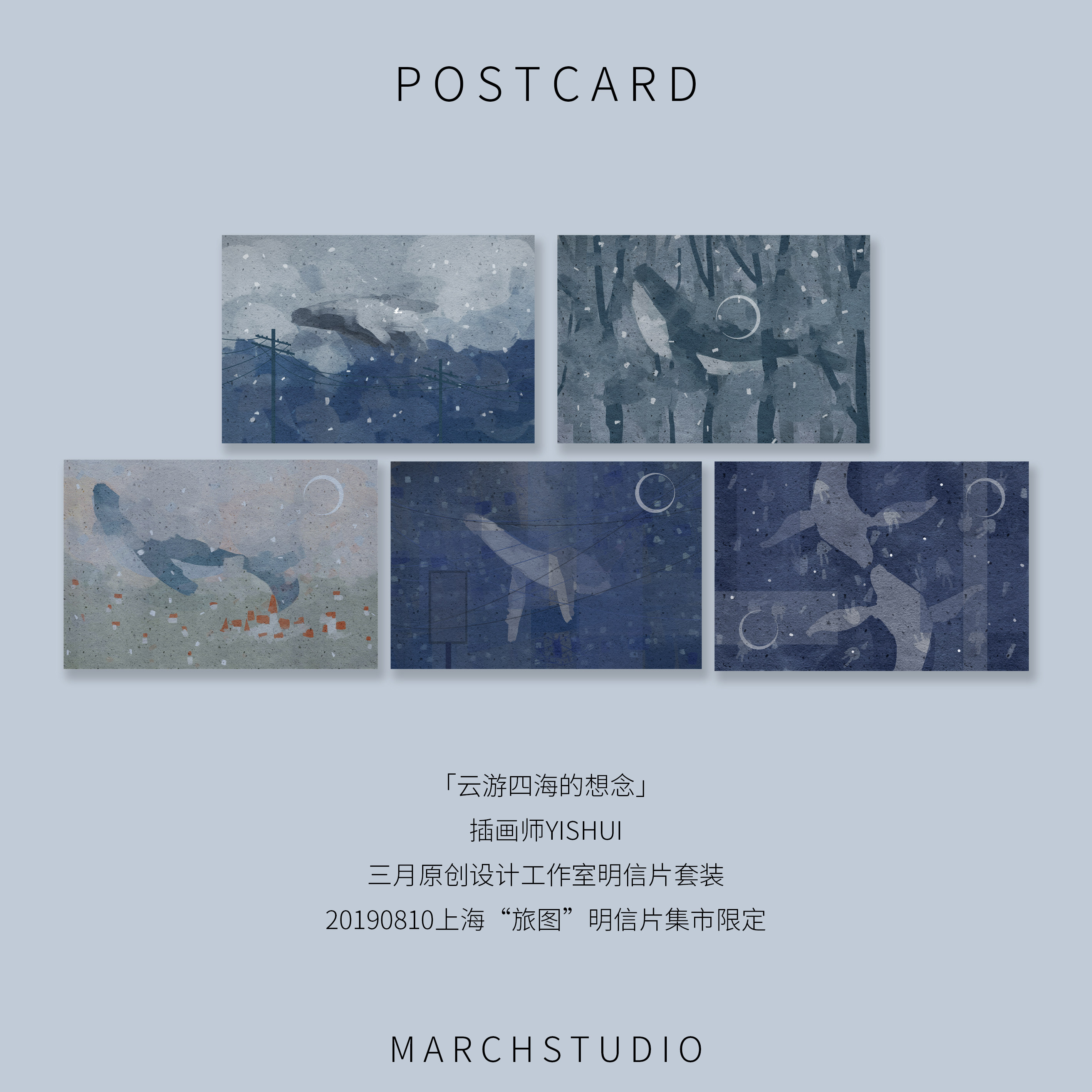 📚 「鲸鱼系列」云游四海的想念 三月明信片 鲸鱼 信差 原创插画