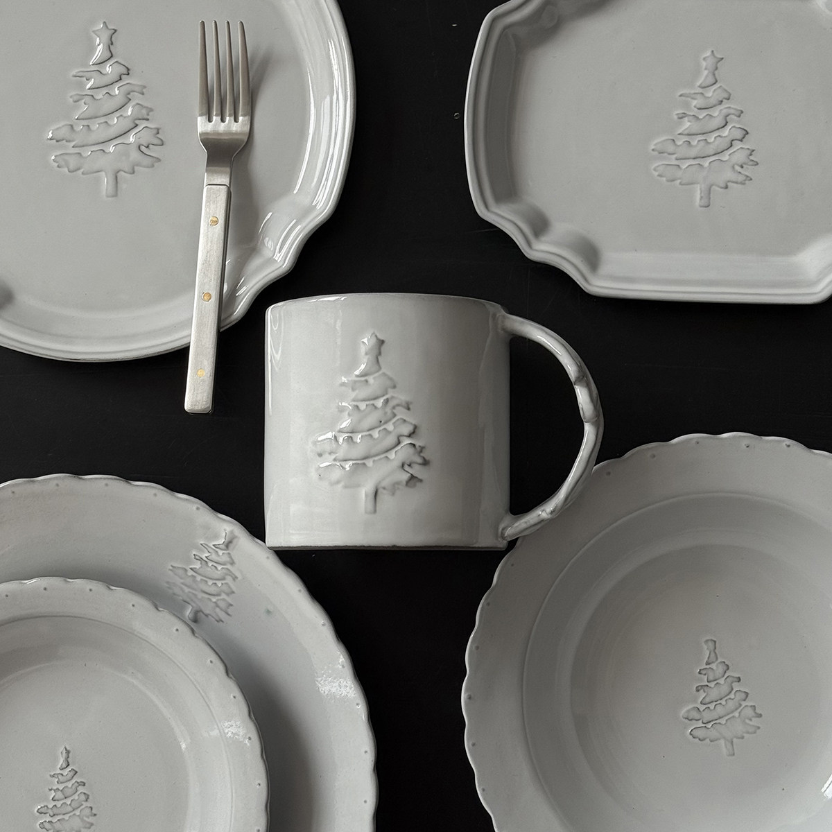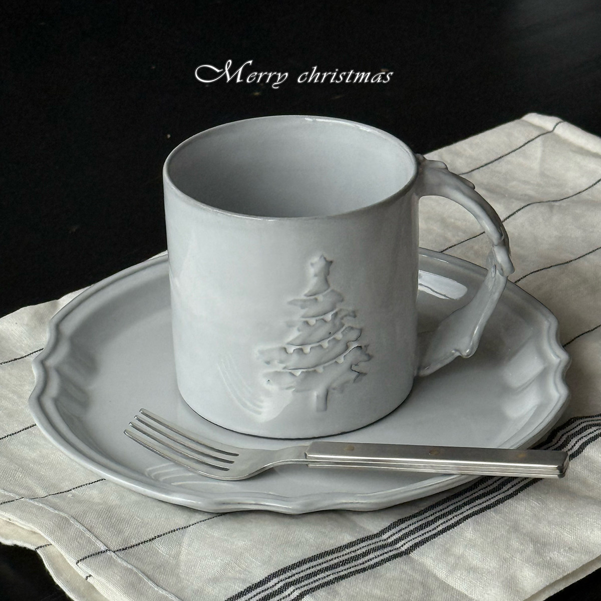 📚 韩国进口Hye hwa yo手作黑陶 雪隐松系列浮雕餐盘餐碗 咖啡马克杯